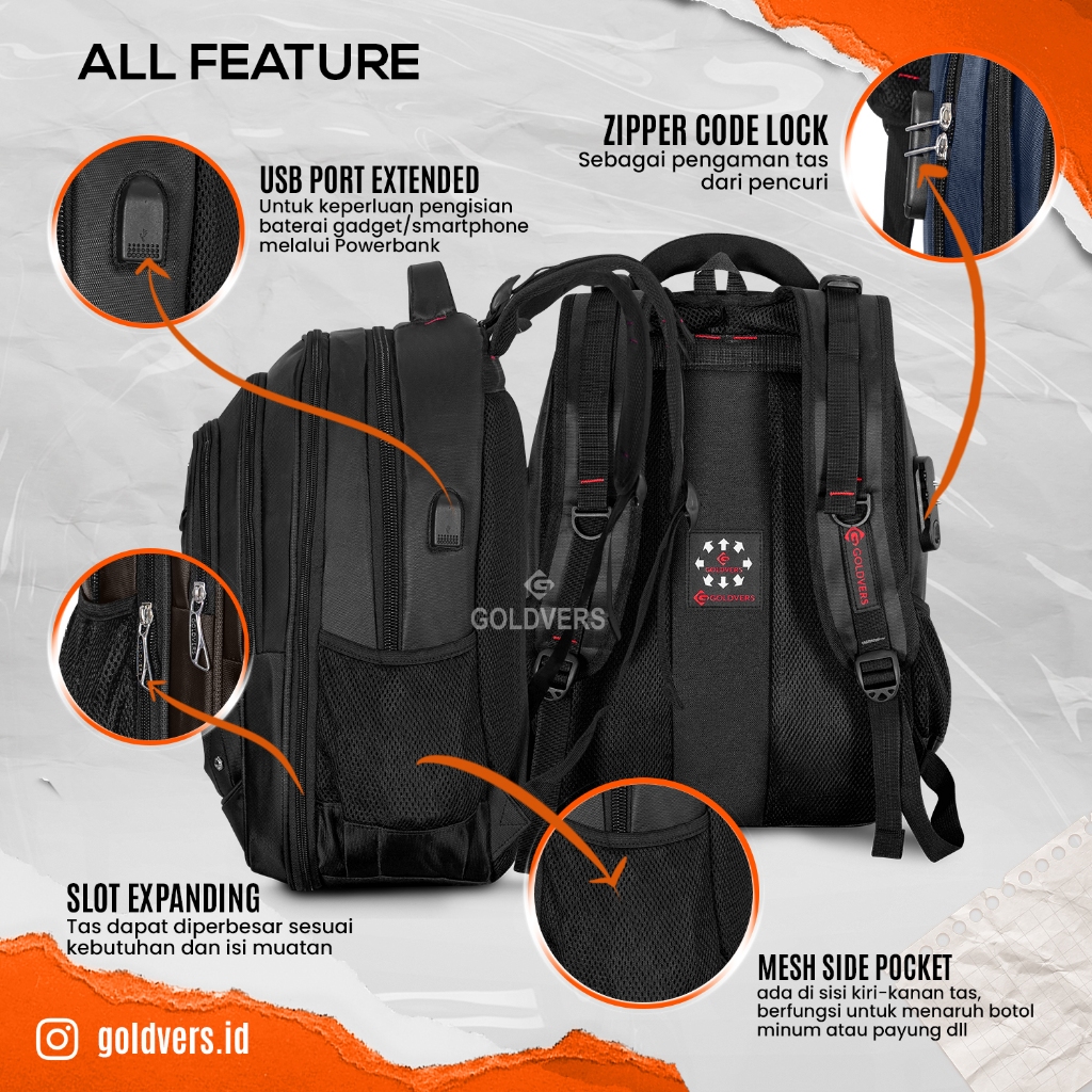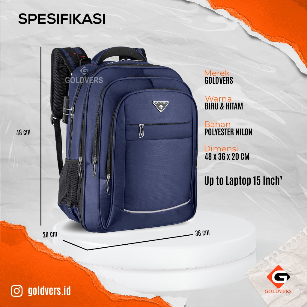 g0ldsvers - PRIME Tas Ransel Kerja Sekolah Tas Laptop Polo Kuliah Pria 18 Inch Backpack Polo Laptop USB LOCK KEY