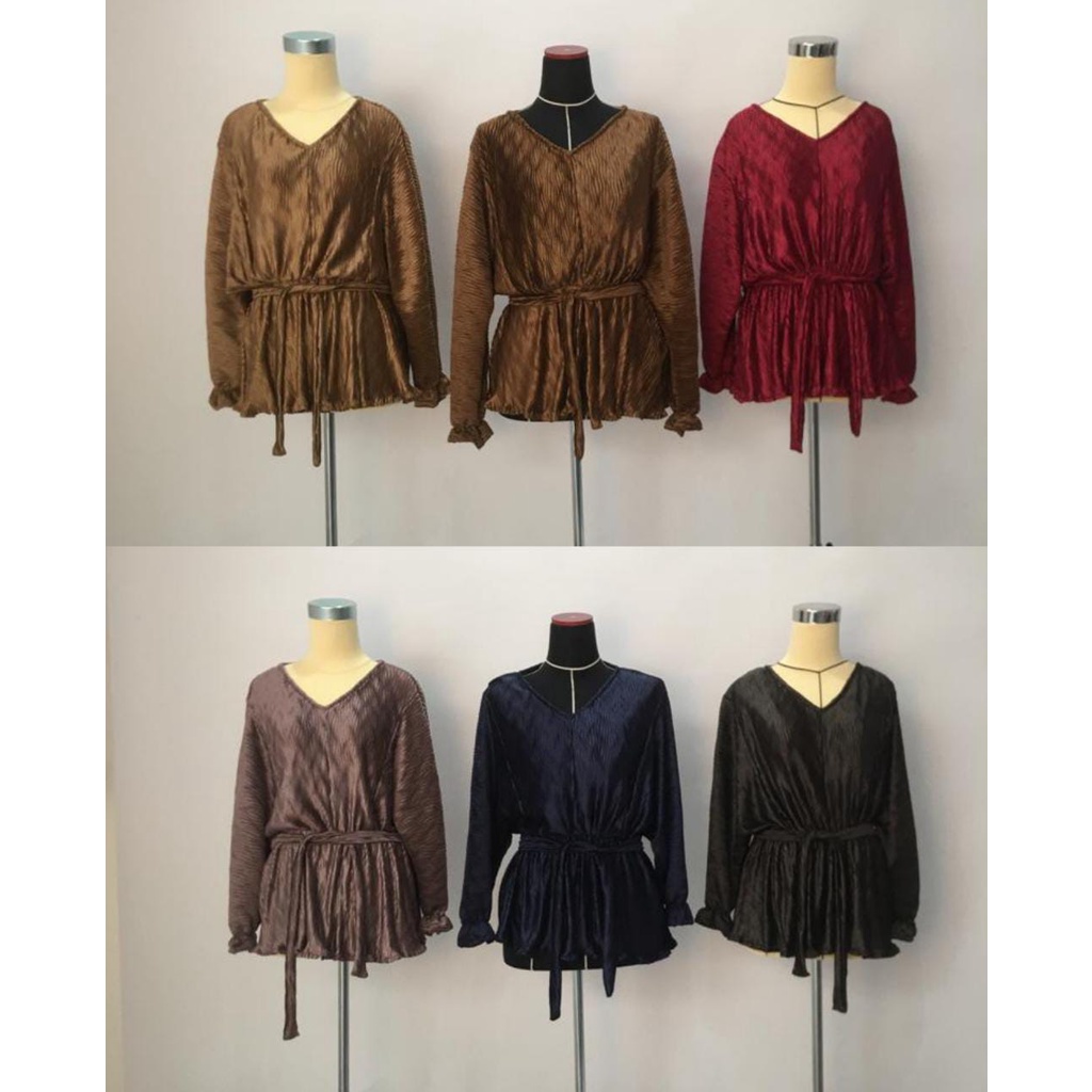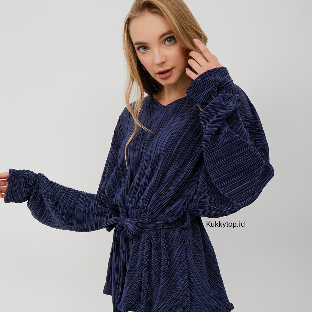 Kukky Top Atasan Wanita Terbaru Blouse Tangan Panjang Plisket Korean Style 12035