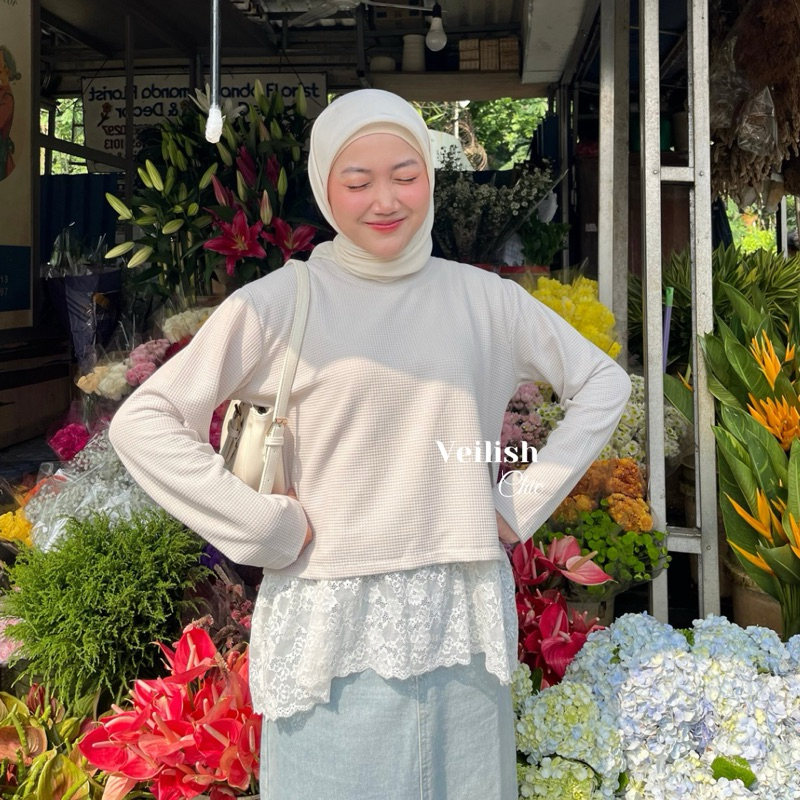 PEGGY T0P - Atasan Wanita Lengan Panjang Kaos Korean Top Basic Baju Summer Knit Rib Long Short Sleeve Posha