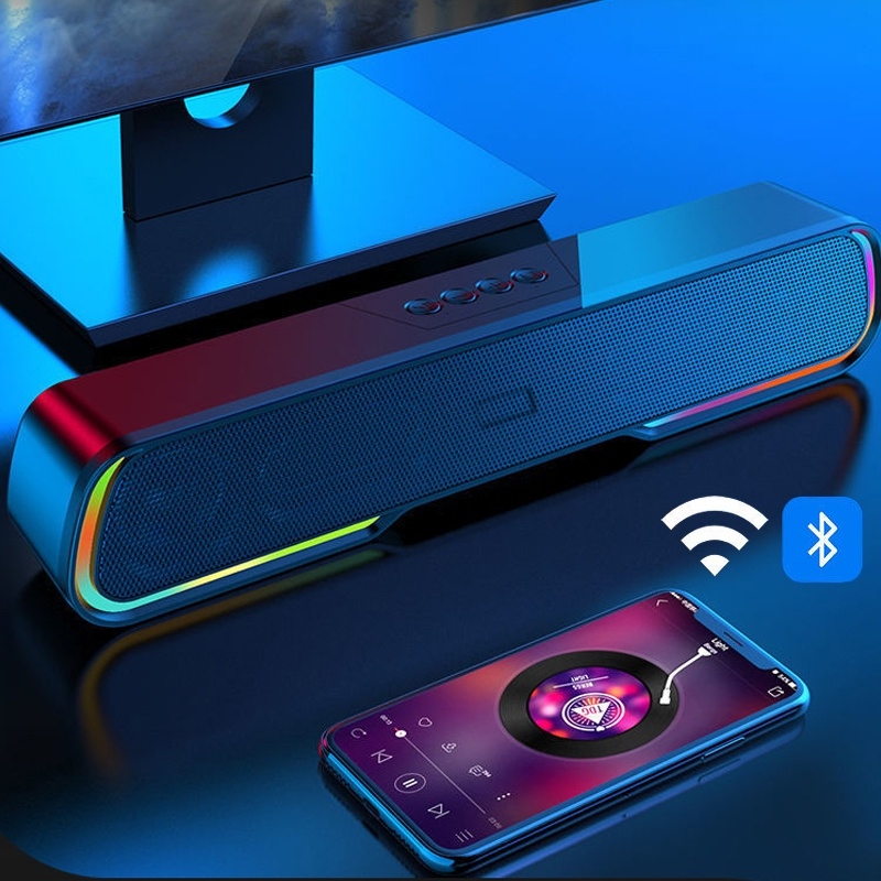 E-Home Multimedia 5.0 Speaker Bluetooth Soundbar RGB LED Light Computer TV Phone TF 360° Stereo Surround Wireless Bluetooth Speaker Sound Bar GS8 RGB Rhythm Light
