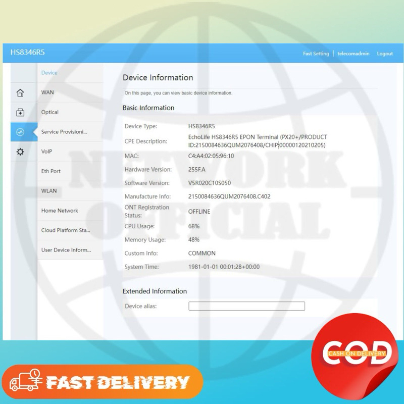 ONU ONT XPON GPON EPON HUAWEI HS8346R5 SUPPORT ALL MODE