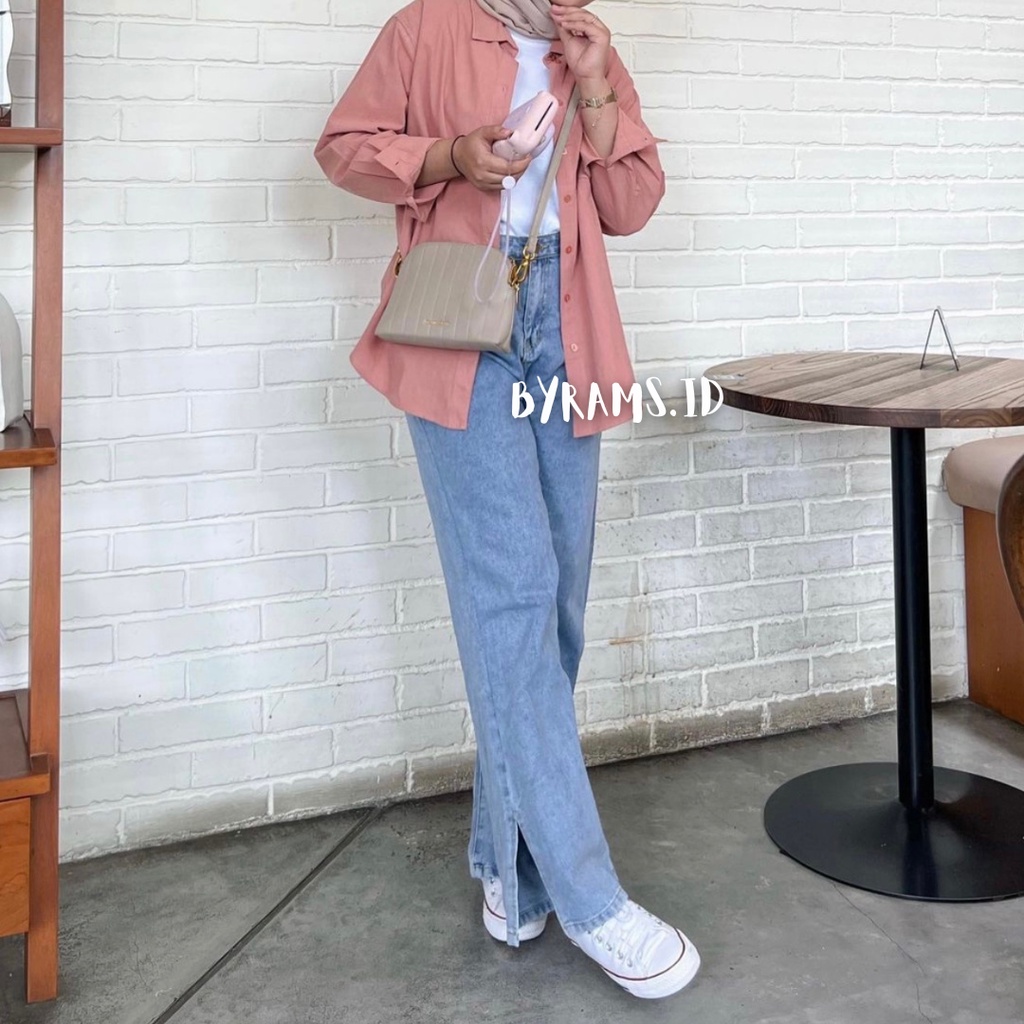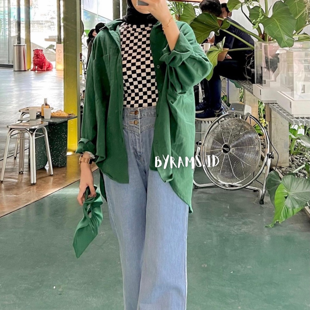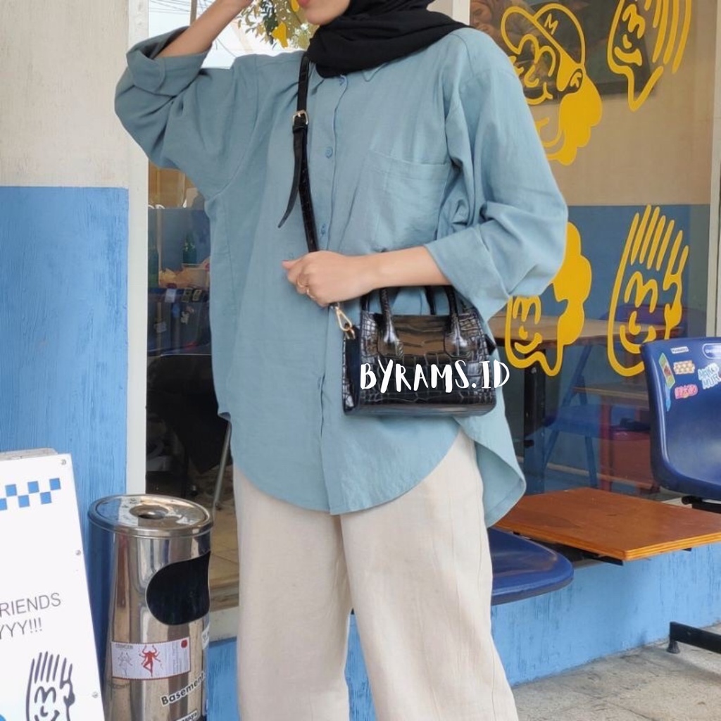 Kemeja Wanita Oversize Linen Olivia Shirt Linen Pocket Oversize