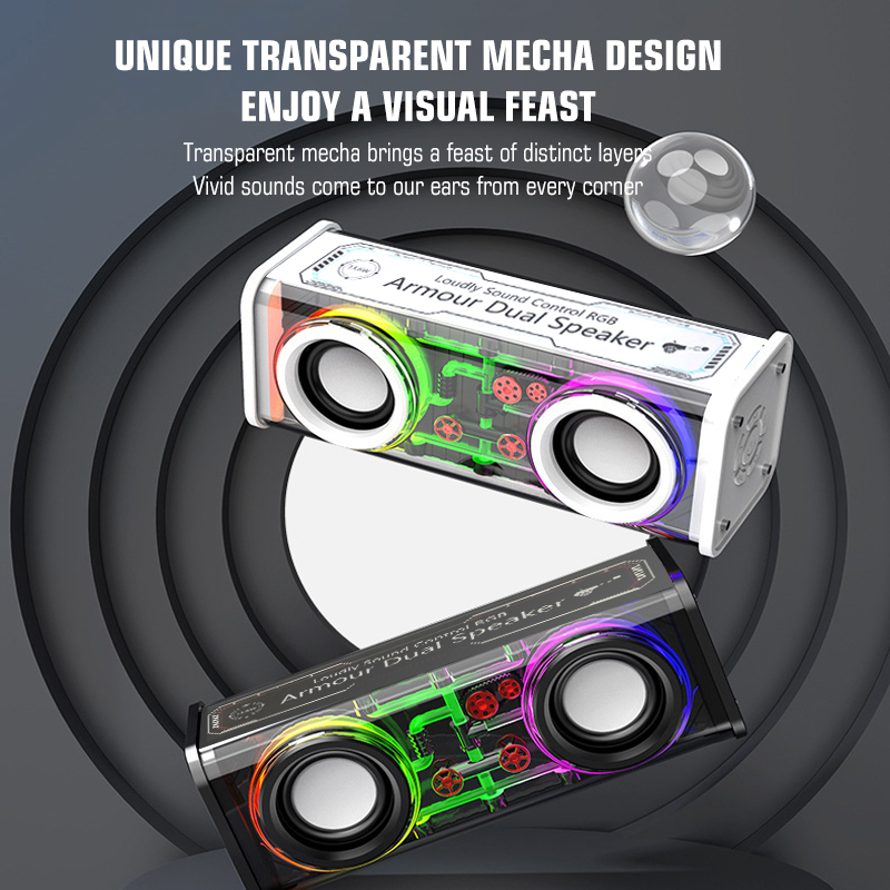 【】Viqoo Original Double Subwoofer Cyberpunk Speaker Bluetooth 5.3 Music Speaker RGB 3 LED Light modes Transparent Mech Speaker Bluetooth Bass - S38