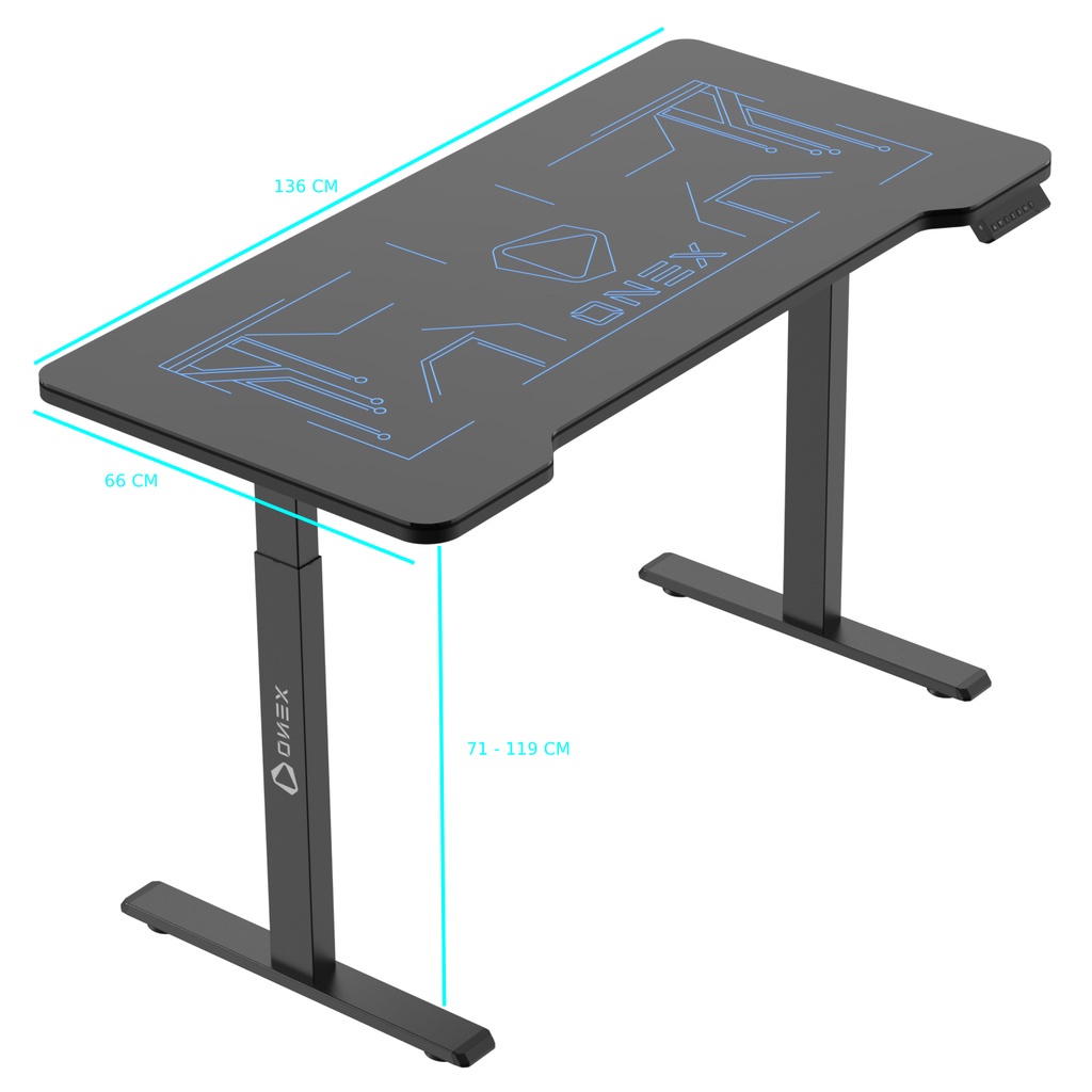 ONEX GDE1400G-RGB Adjustable Meja Gaming Desk Tempered Glass RGB