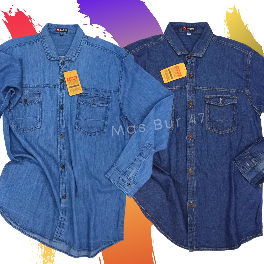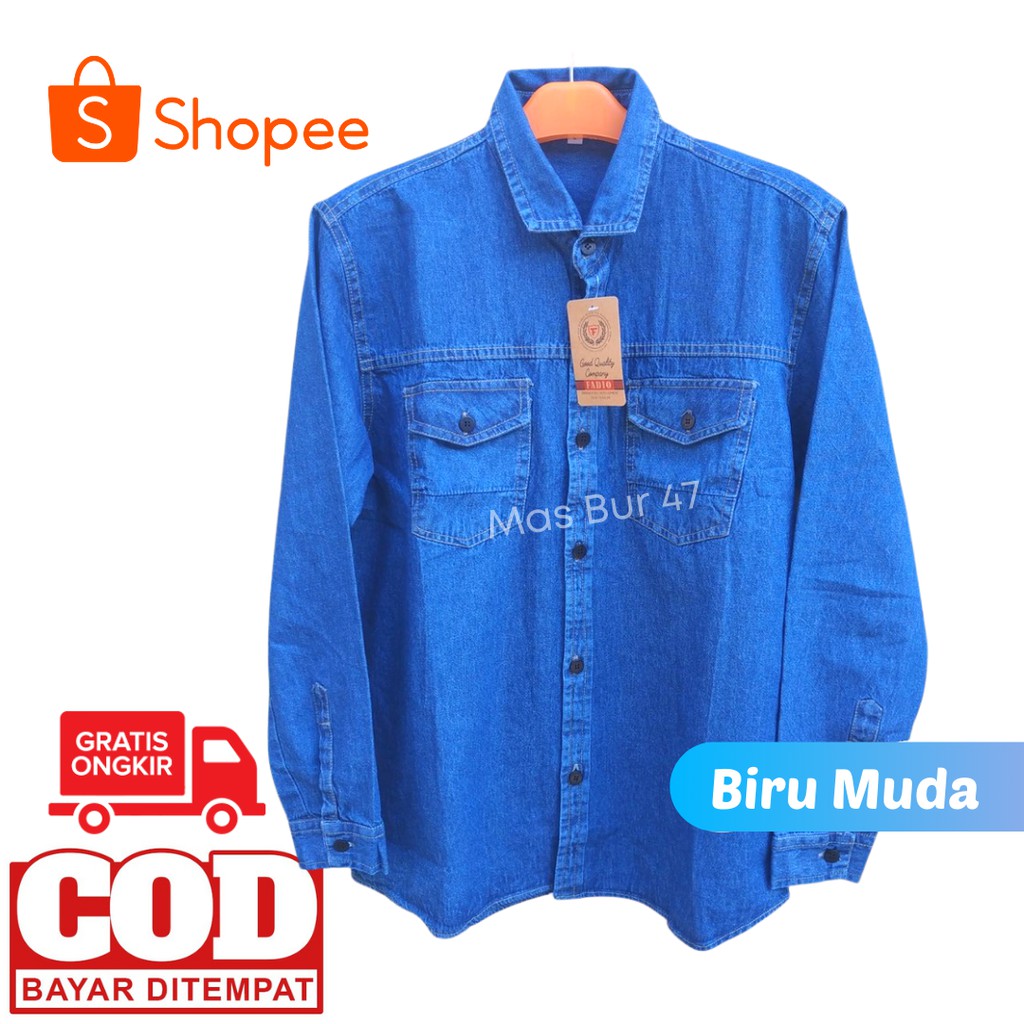 Kemeja Jeans Pria Lengan Panjang Denim Distro Kasual Casual Tomiko Fadio [Biru]