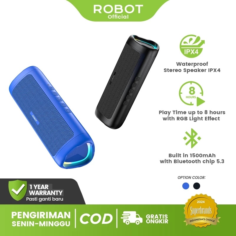 ROBOT RB525 Speaker Bluetooth 5.3 Double Bass 10wat With RGB Light Waterproof IPX4 Garansi Original Resmi