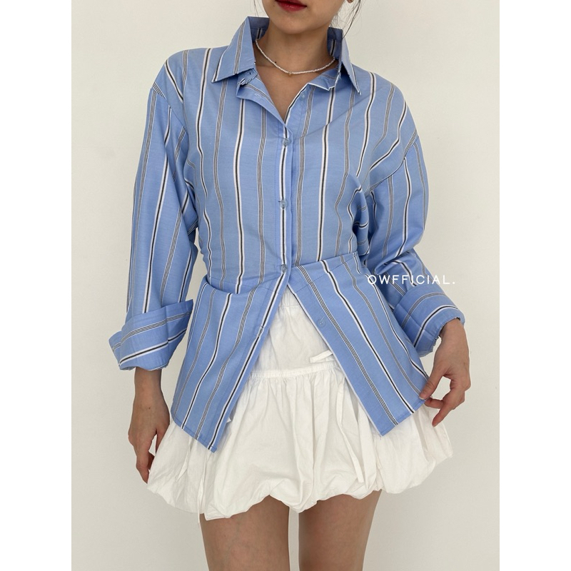 NARA BASIC STRIPE SHIRT | Kemeja Salur Striped Shirt Wanita Ngantor Working Baby Shirt Kemeja Kantor Kerja Wanita Polos Bahan Katun Lengan Panjang Formal Fitted Slim Fit Office Siren