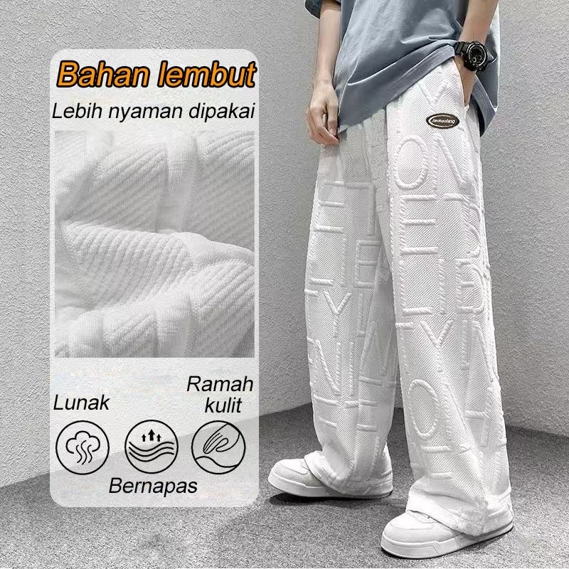 ✨(Best Seller)Celana Longgar Korea Pria Katun/Celana gombrong pria/Celana panjang pria/Celana baggy pants pria/Celana pria korean style - Nyaman dan Sejuk|Hitam/Abu-abu/Putih|M-3XL|