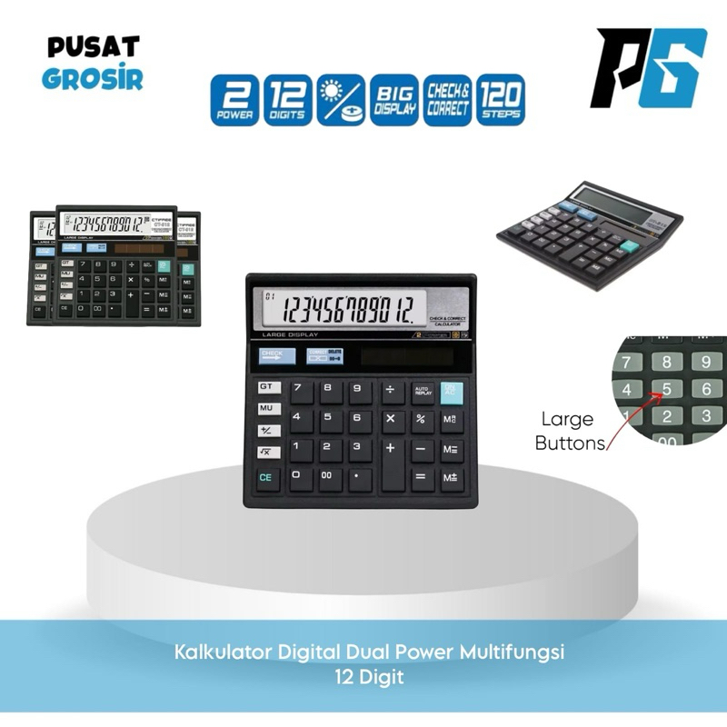 GM-512 Calculator Layar Digital Hitam 2 Power Kakulator Gmax Besar 12 Angka