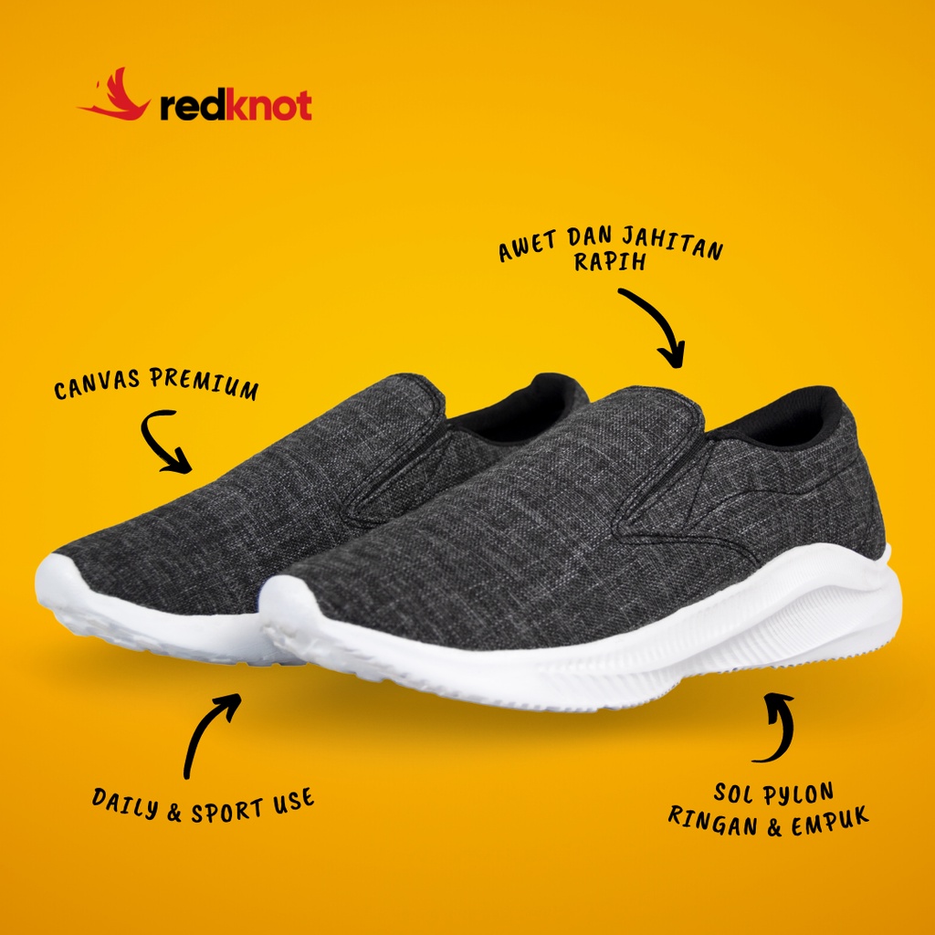 Redknot Miter Hitam - Sepatu Slip On tanpa tali untuk Olahraga, Jalan Santai, Aktivitas Sehari hari
