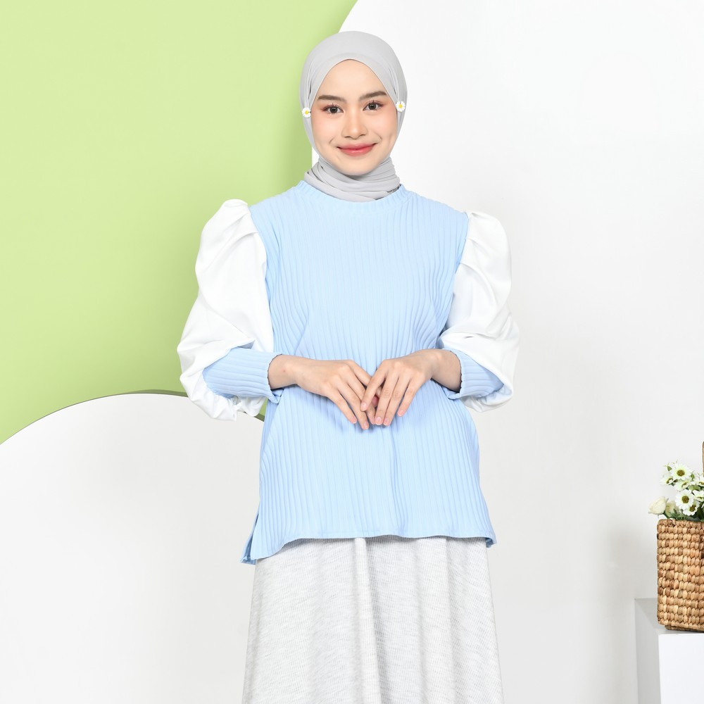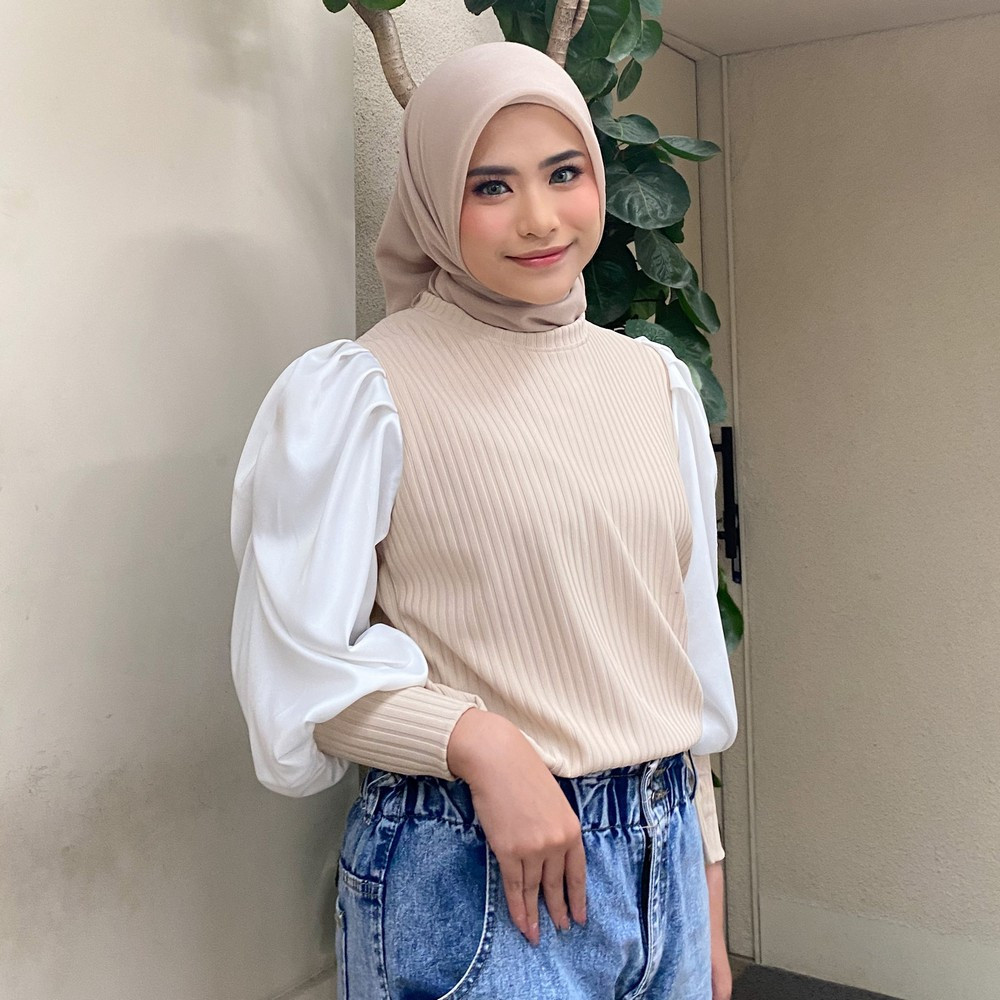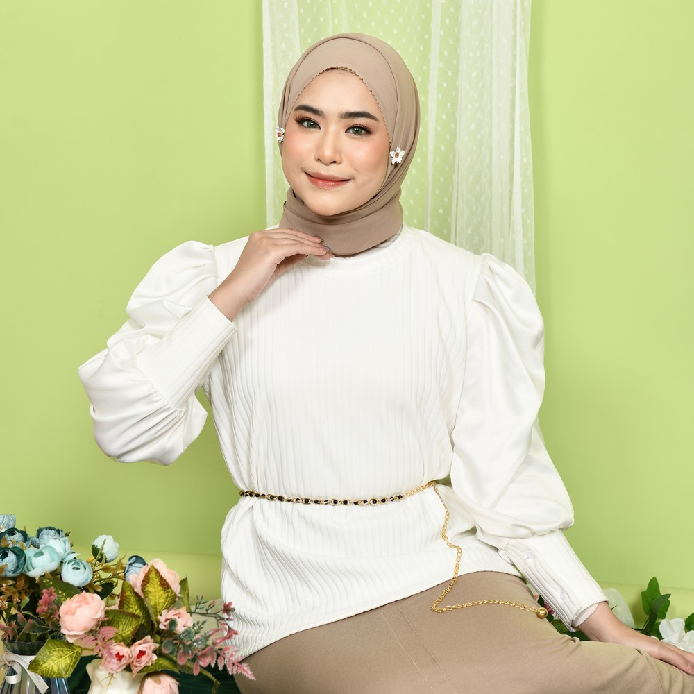 KELLEN PUFF SLEEVE T0P MIX SATEN / BLOUSE WANITA KOREAN STYLE / BLOUSE LENGAN BALLON