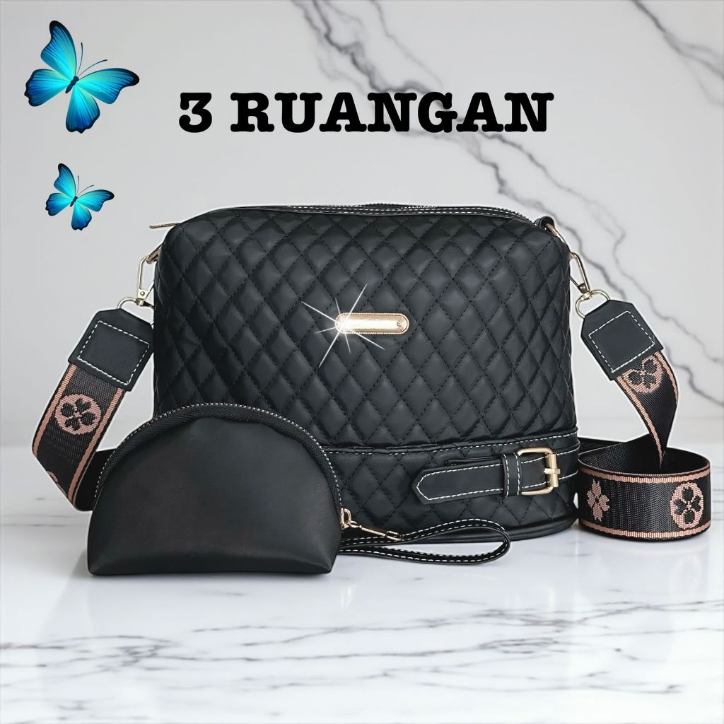 SYAFIRA Tas Selempang Wanita Slingbag Kulit Sintetis Premium Bordir Motif Kotak-kotak PX26 LX11 TX20 cm dengan Tali