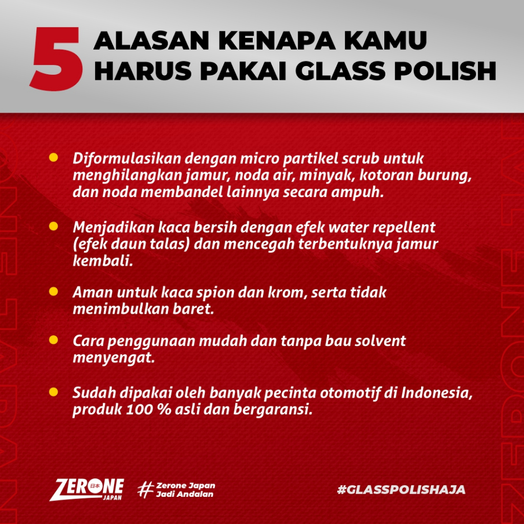 Zerone Japan Pembersih Jamur Kaca Mobil Glass Polish 100 gram