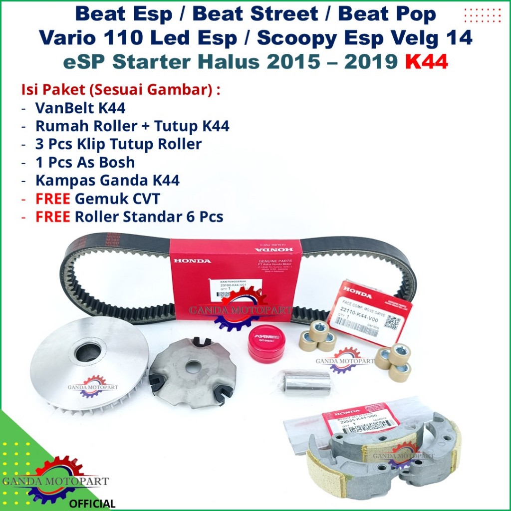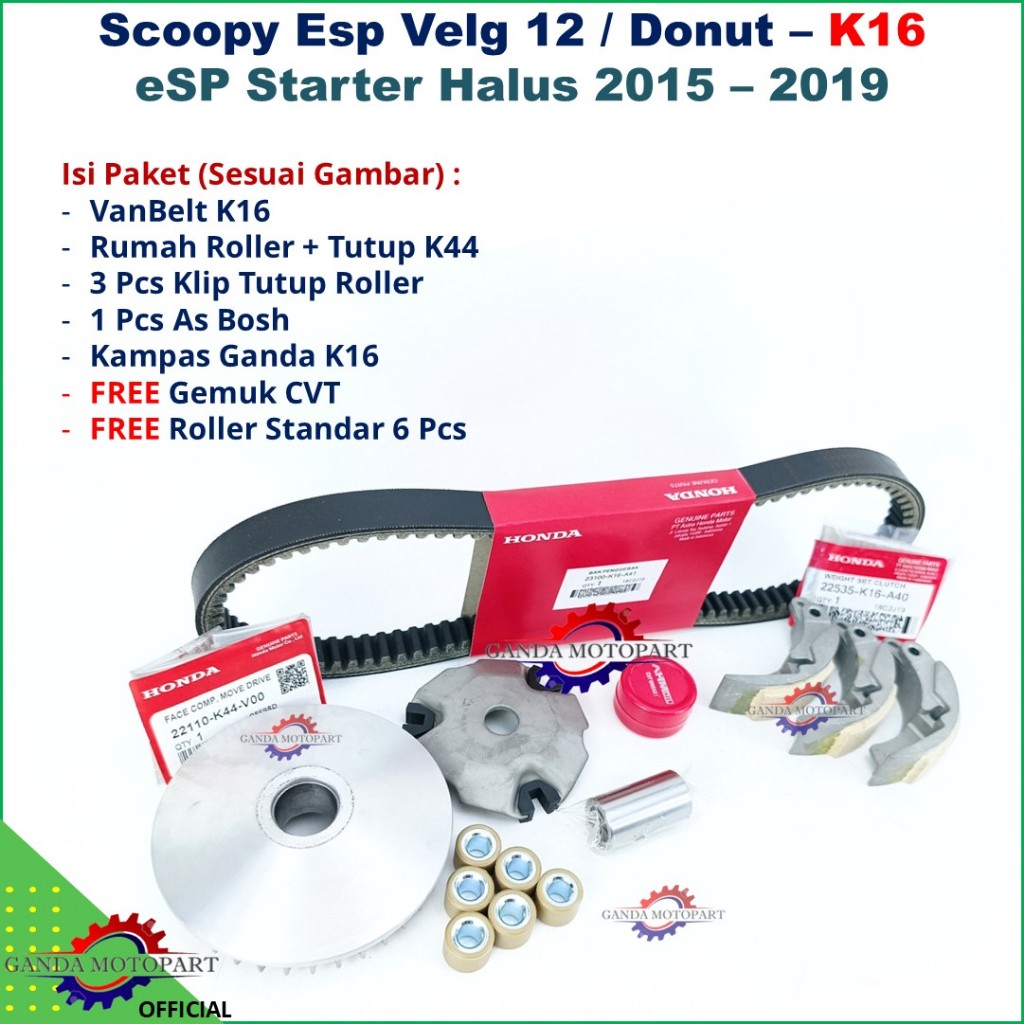 Paket Kirian Vanbelt V Belt Rumah Roller Kampas Ganda CVT Scoopy BeAT Vario 2015 2016 2017 2018 2019 Fi eSP K16 K44 Starter Halus