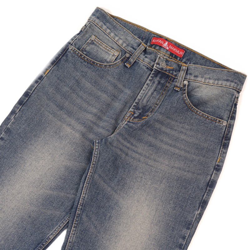 Arifan Makmur Celana Jeans 15 Oz Reguler Fit Blue Bleach Brown