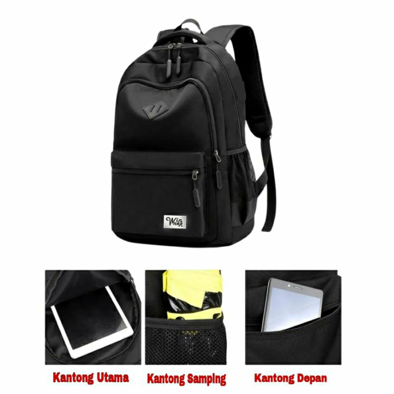 Tas Sekolah Pria Waterproof Tas Ransel Laptop Smp Sma Kuliah Tas Punggung Backpack Polo Winner 091