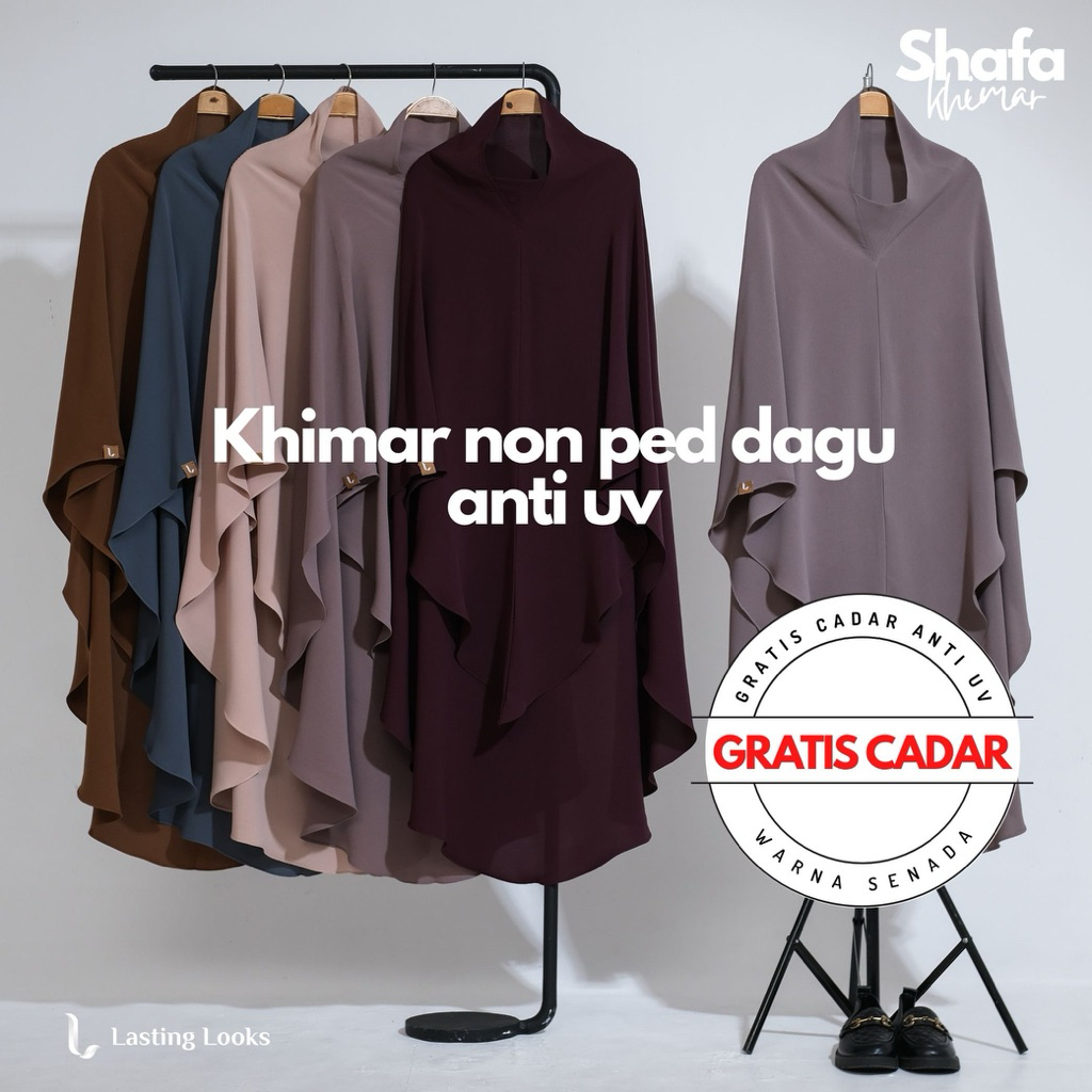 LASTINGLOOKS - Shafa Khimar dagu Anti UV Gratis Cadar | Hijab Syari Jumbo Umroh Haji Daily