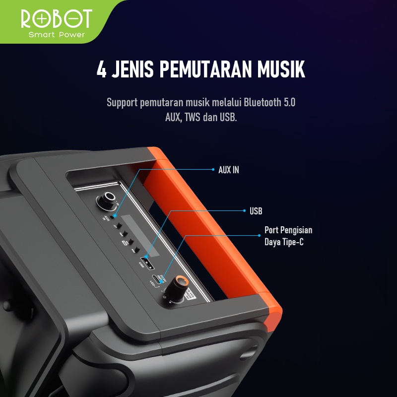 ROBOT Speaker Bluetooth Karaoke Super Bass RGB 20W Bluetooth 5.0 Audio Mic Wireless Portable RB500 Original - Garansi 1
