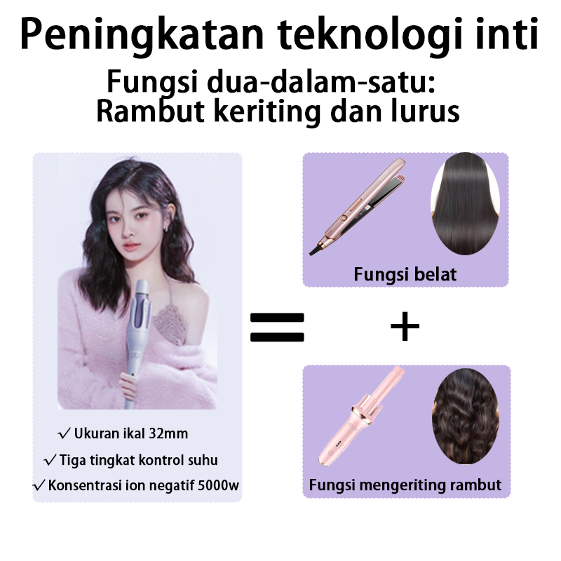 PRIBINRUIS 2in1 Catokan Curly Otomatis Ceramics 32mm Catokan Keriting Rambut Otomatis Lon Negatif Catokan Rambut Curly