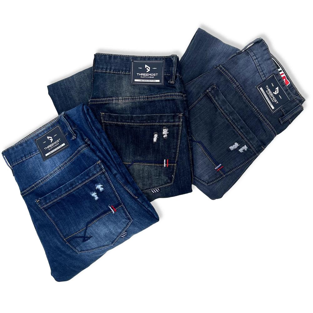 Threemost - Celana Jeans Ripped Panjang Pria Sobek Bermuda Distro Wisker Original