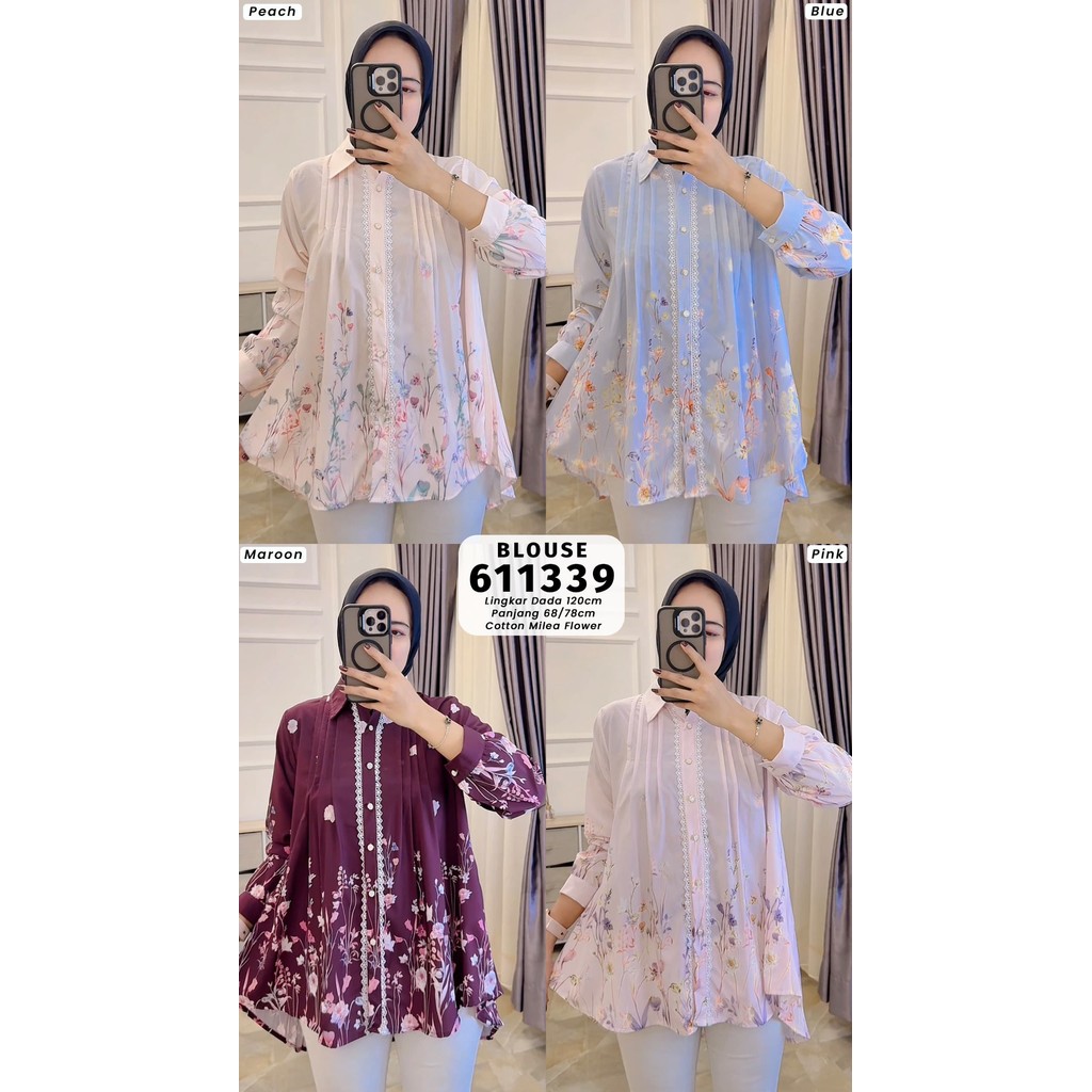 EXTU HERITAGE - Meysa Blouse Silky Motif Elegan Busui Friendly|Blouse Wanita Adem Fit to XL - 511384, 511511, 61133