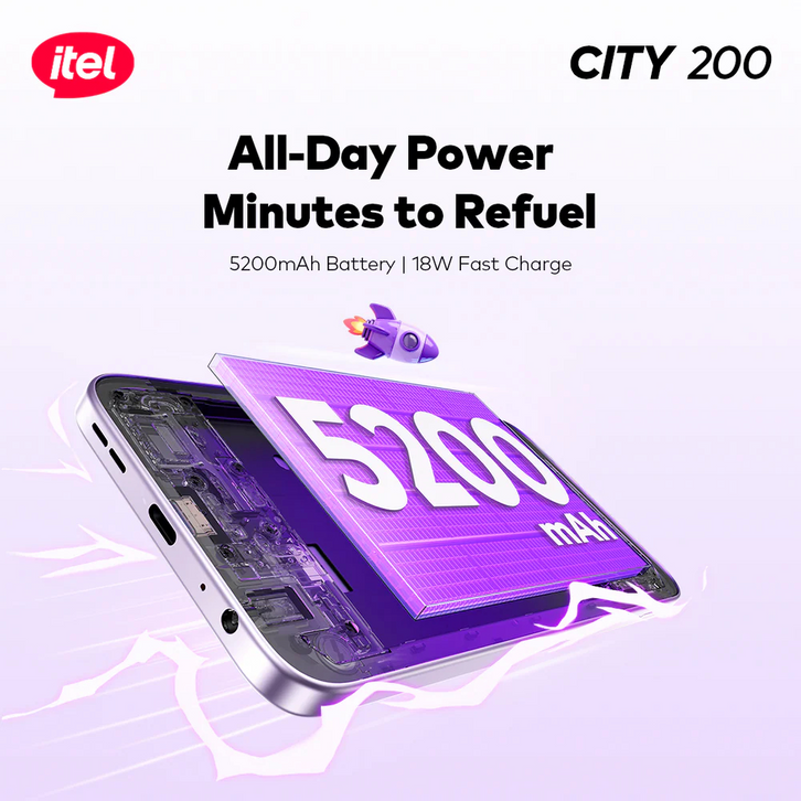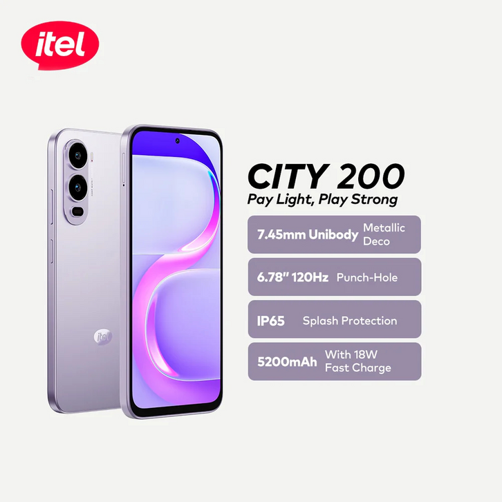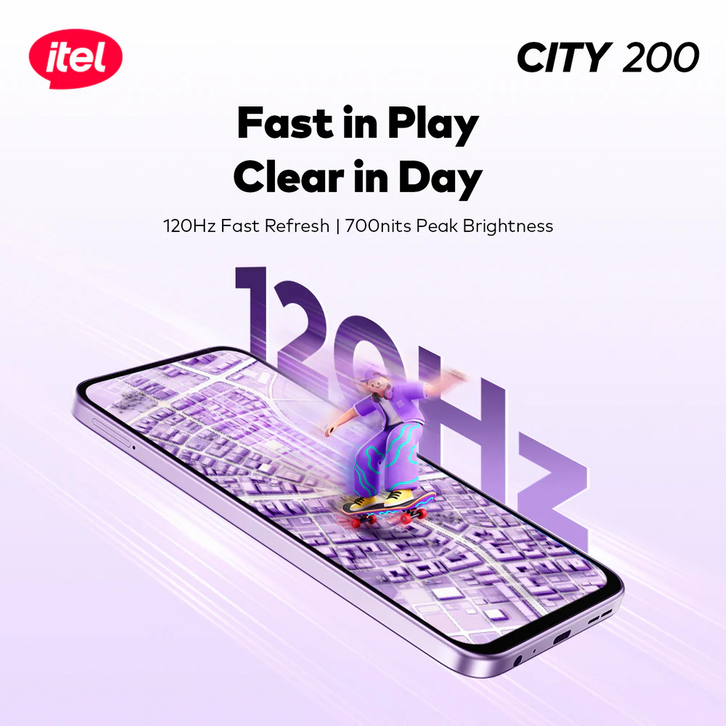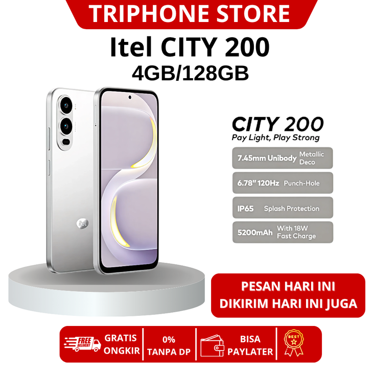 Itel City 200 128GB 6.78” 120Hz Display, 50MP AI Camera 5200mAh Garansi Resmi