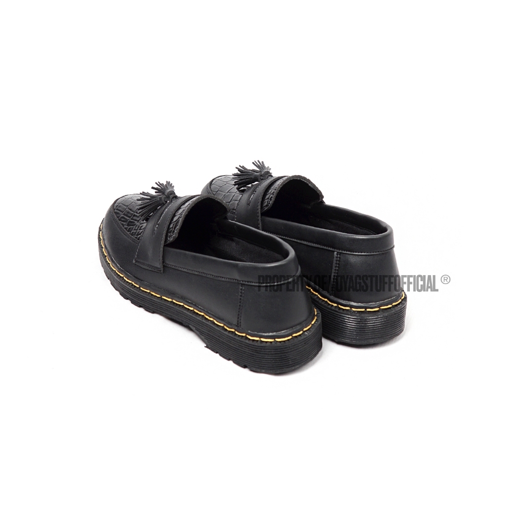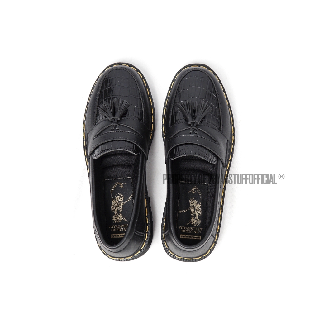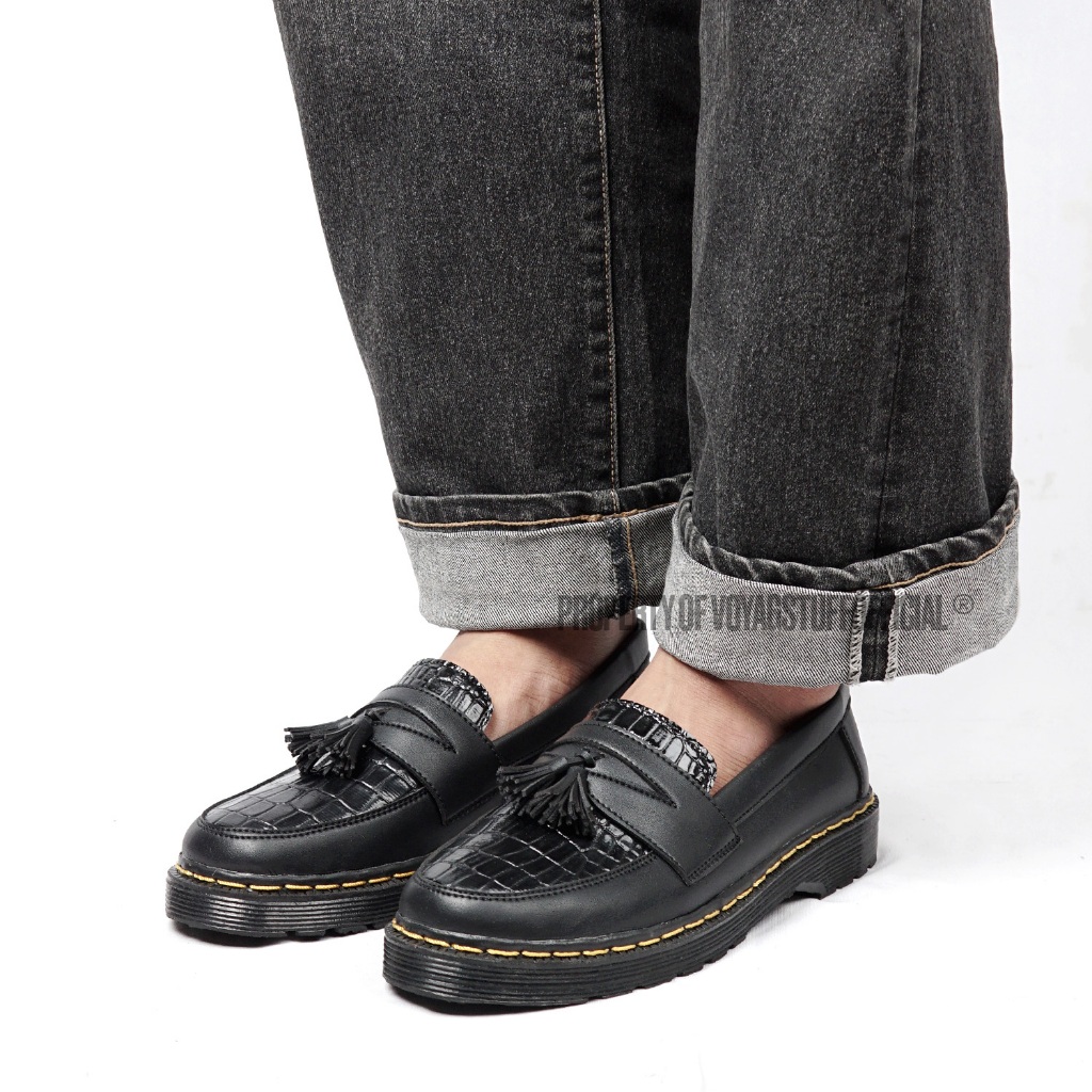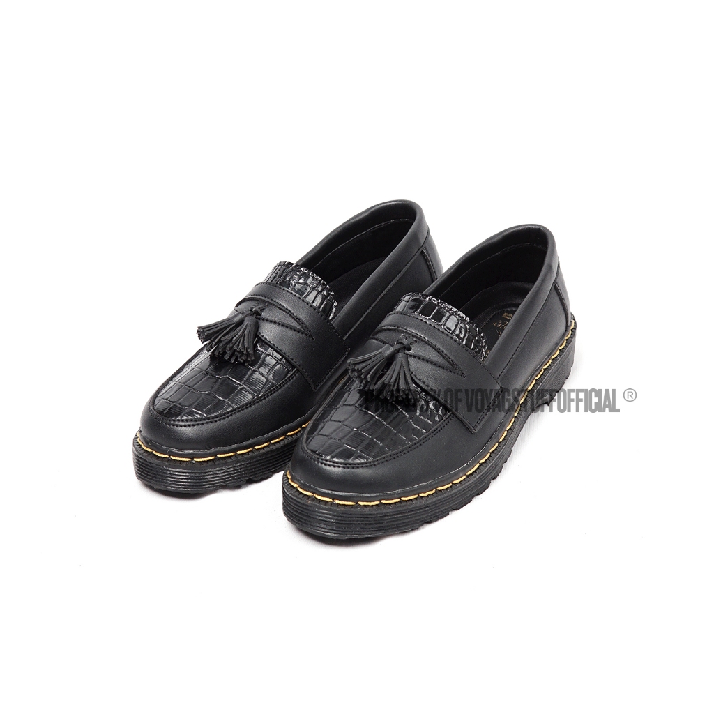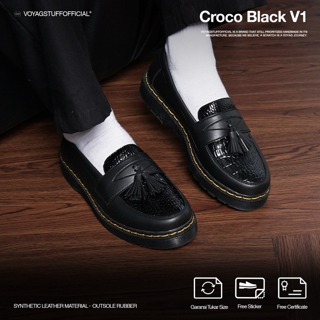 Voyagstuffofficial - Croco V1 Sepatu Slip On Pria Penny Loafers Boots Kulit Black