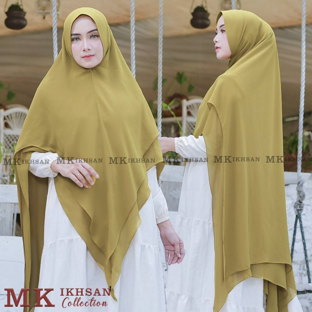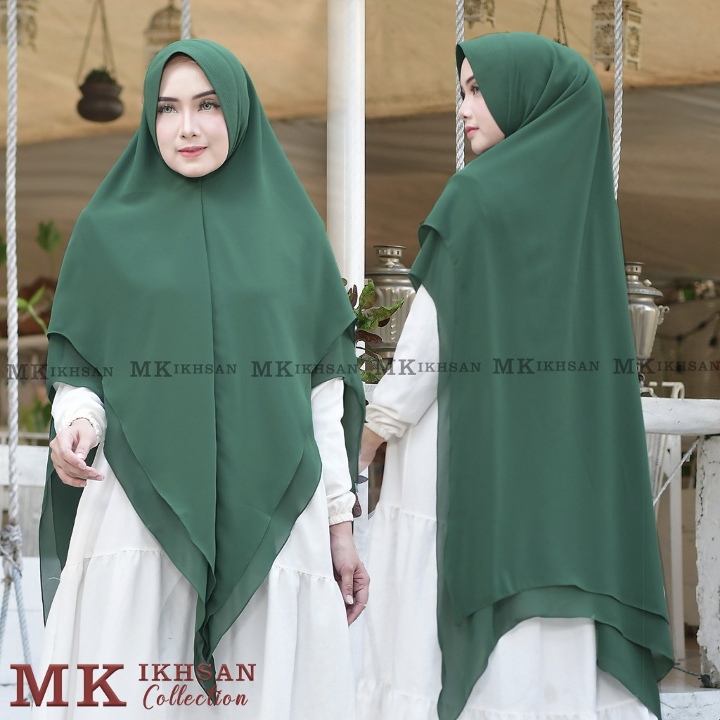 MK IKHSAN COLLECTION KHIMAR SYAR,I CERUTY BABYDOLL DUA LAYER JUMBO XXXL POLOS PET ANTEM TERBARU KEKINIAN