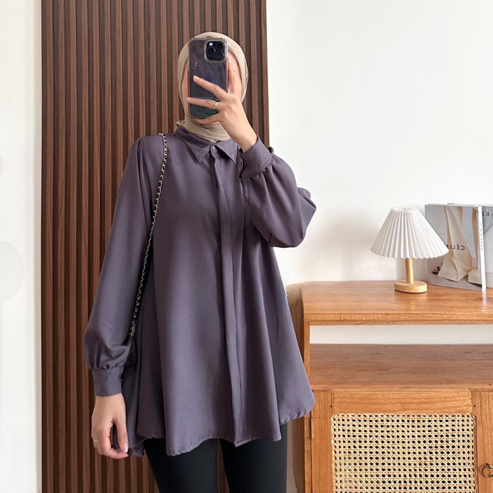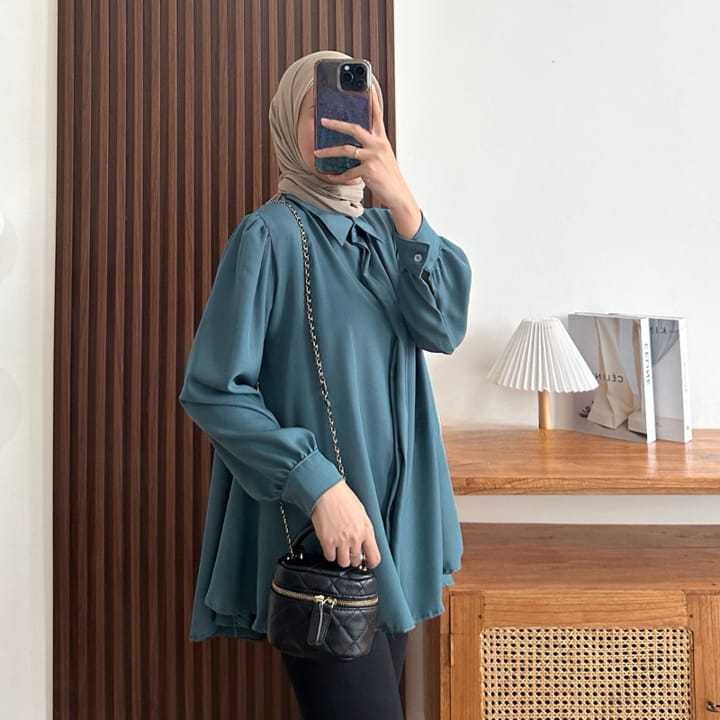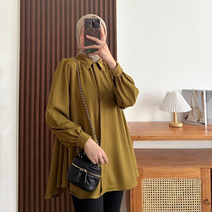 Kinka Blouse Bahan Shakila Kemeja Wanita Kancing Depan Polos Kekinian