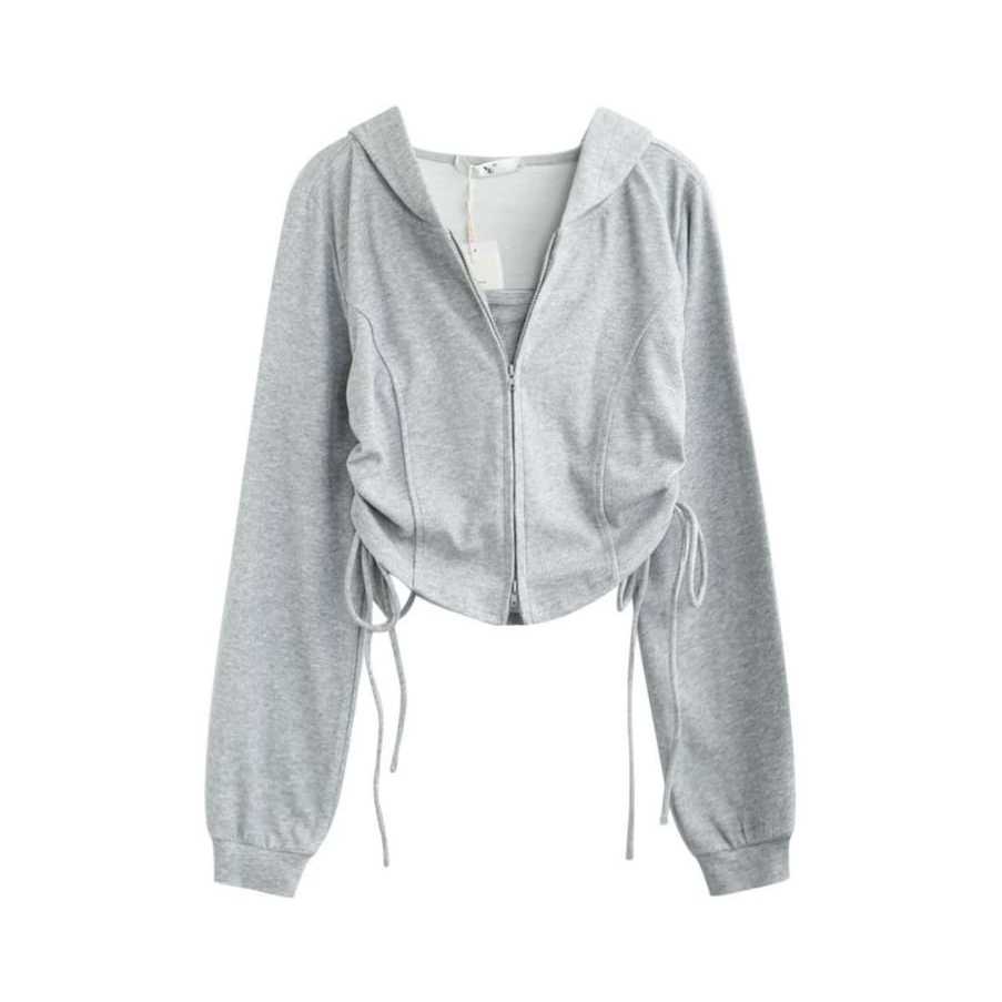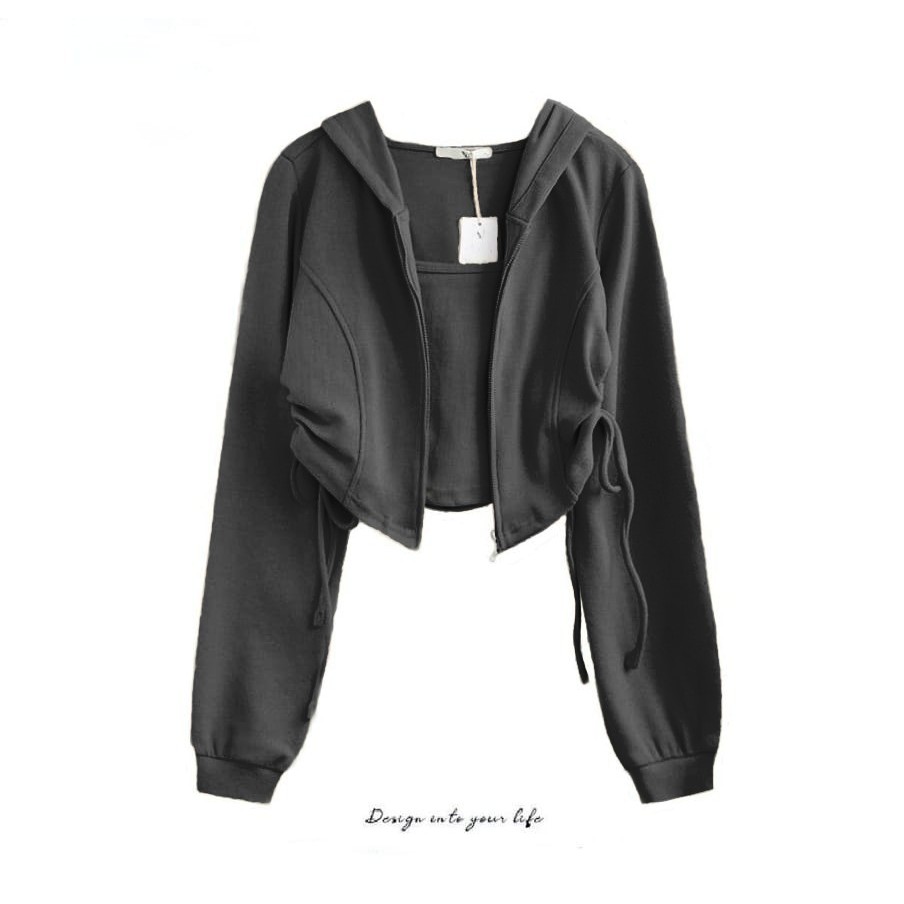 Jaket Wanita Korean Style Adella Crop Zipper Serut - jaket casual atasan wanitan kekinian