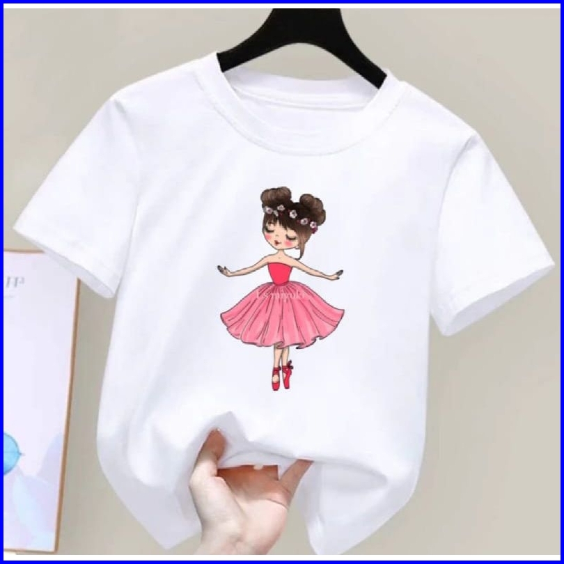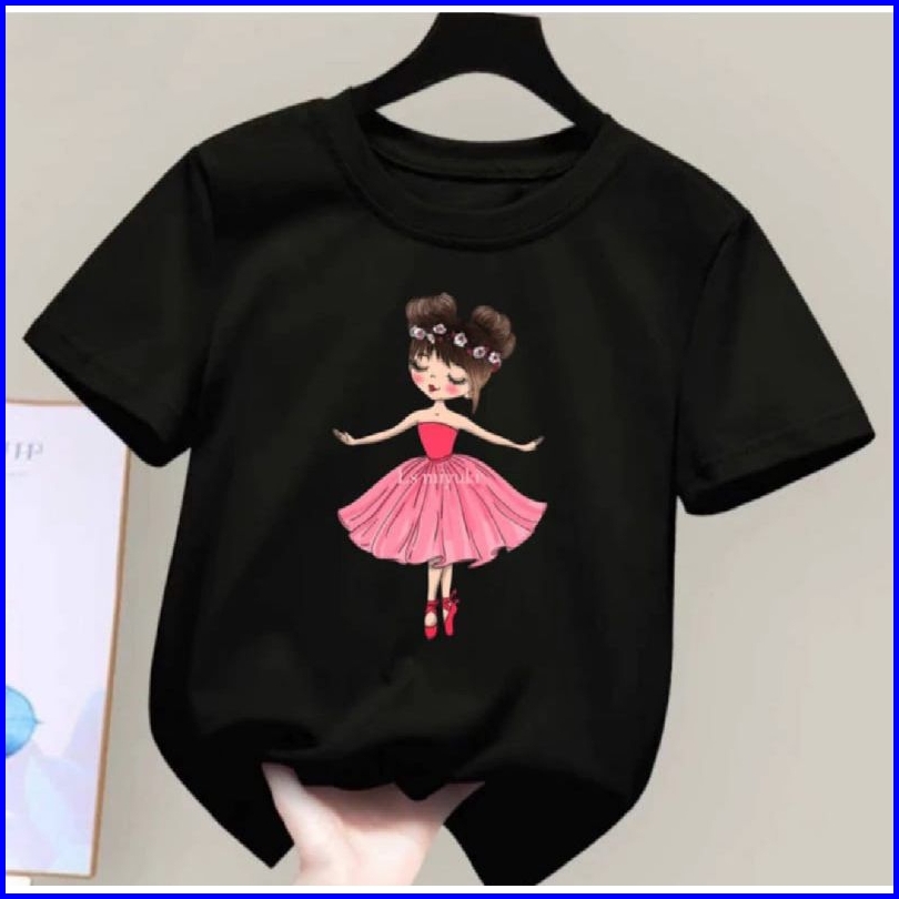 Kaos Atasan Anak Cewek Motif Tari Ballet Pakaian Anak Umur 2-10 Thn Kd 07