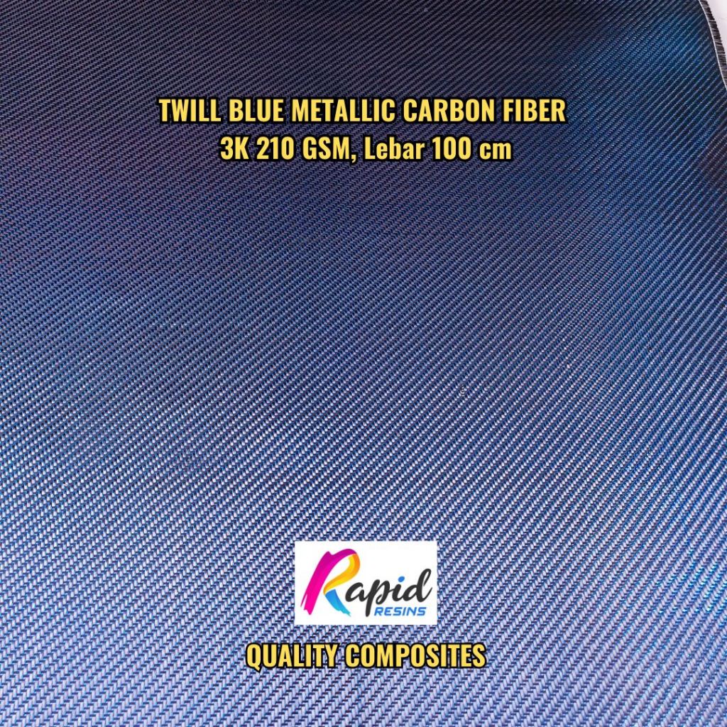 Serat Karbon Twill Metalik Biru Blue Metallic Carbon Fiber Fabric 220 gsm
