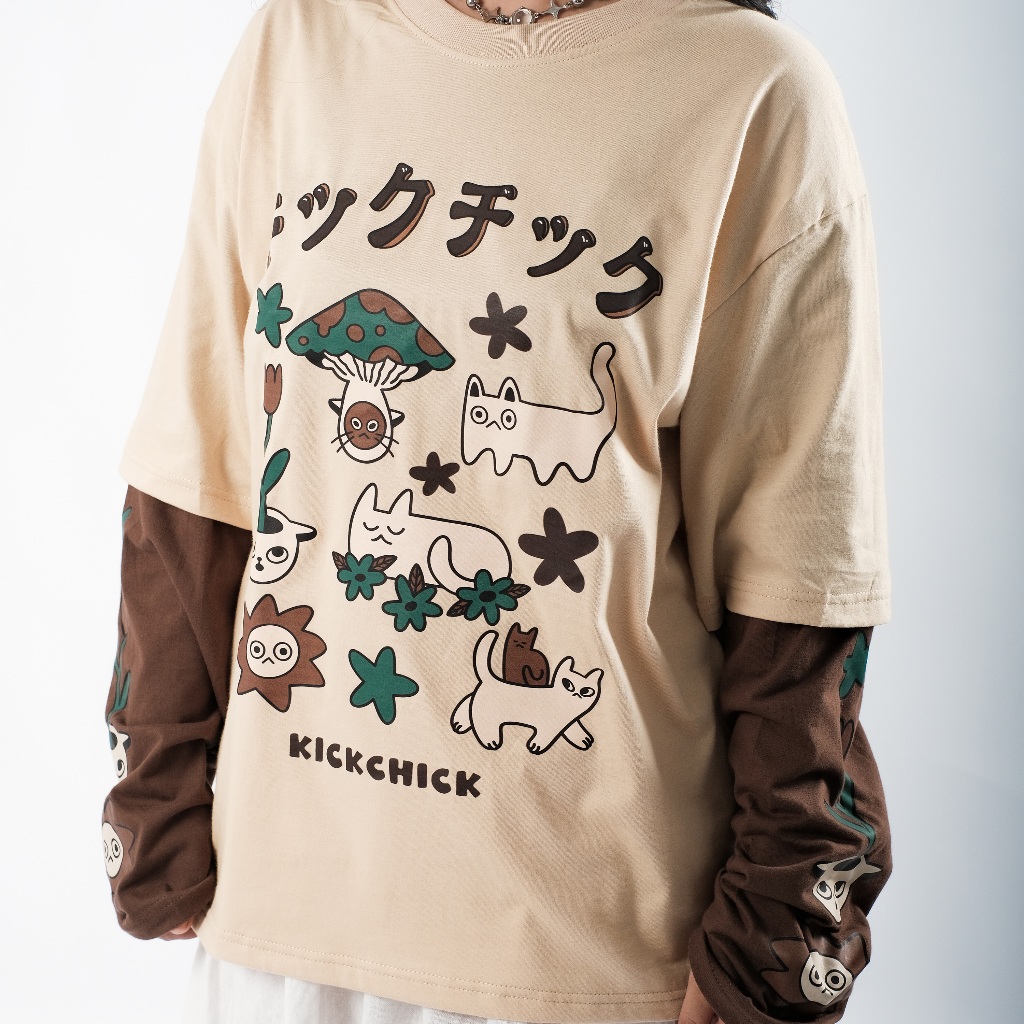 Kickchick Double Sleeve Quirk Cream Brown | Kaos Oversize | Lengan Panjang Unisex KCDS012