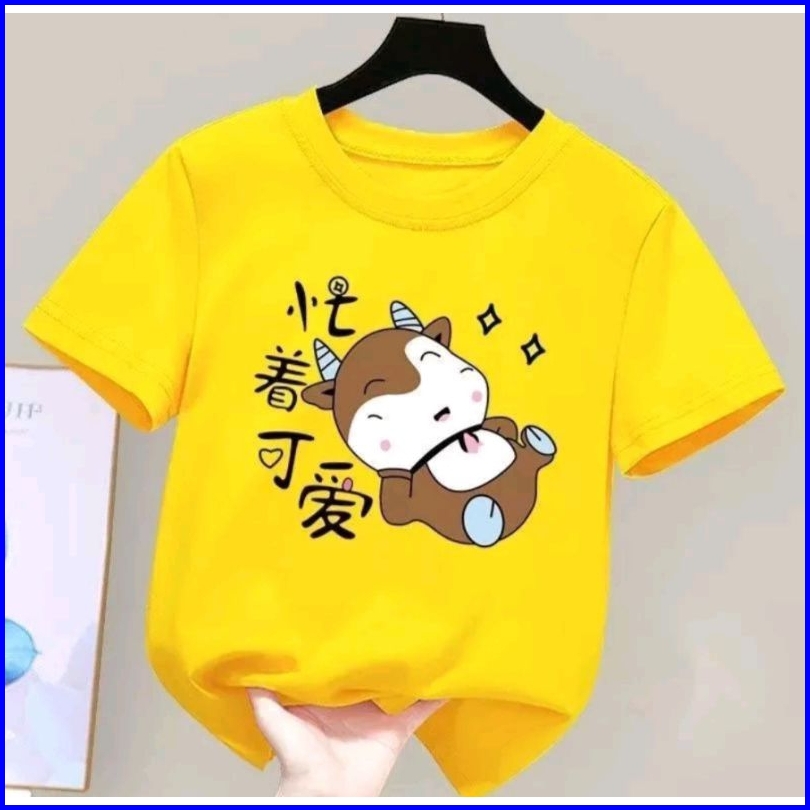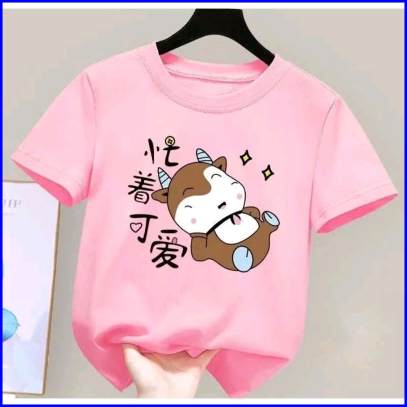 Kaos Oblong Anak Perempuan Motif Sapi Tidur Usia 2-10 Thn