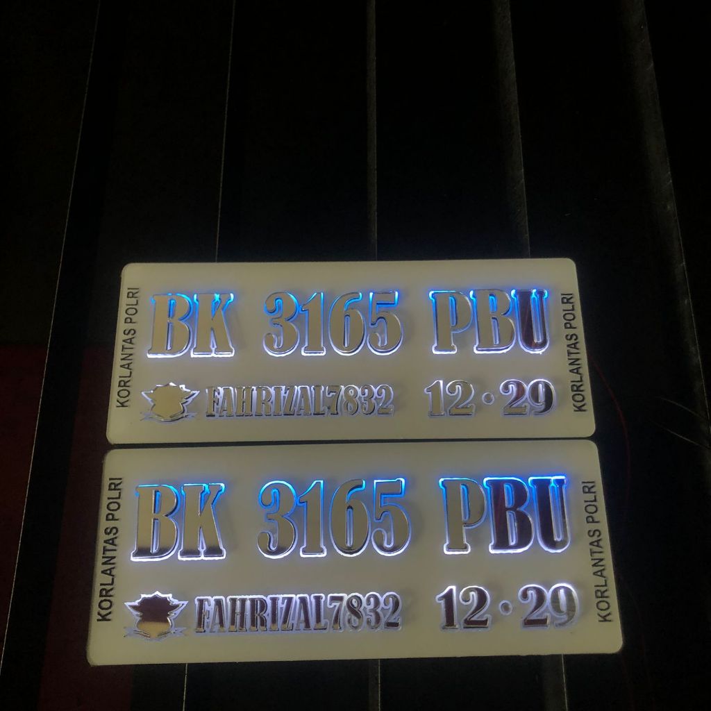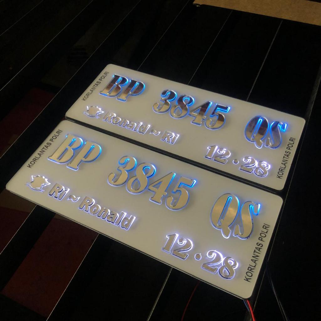 Plat Nomor Motor Akrilik Timbul Led Custom Baut Tanam Keren Murah / Plat Nomor Akrilik
