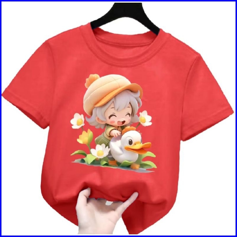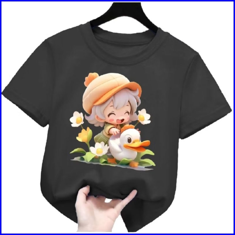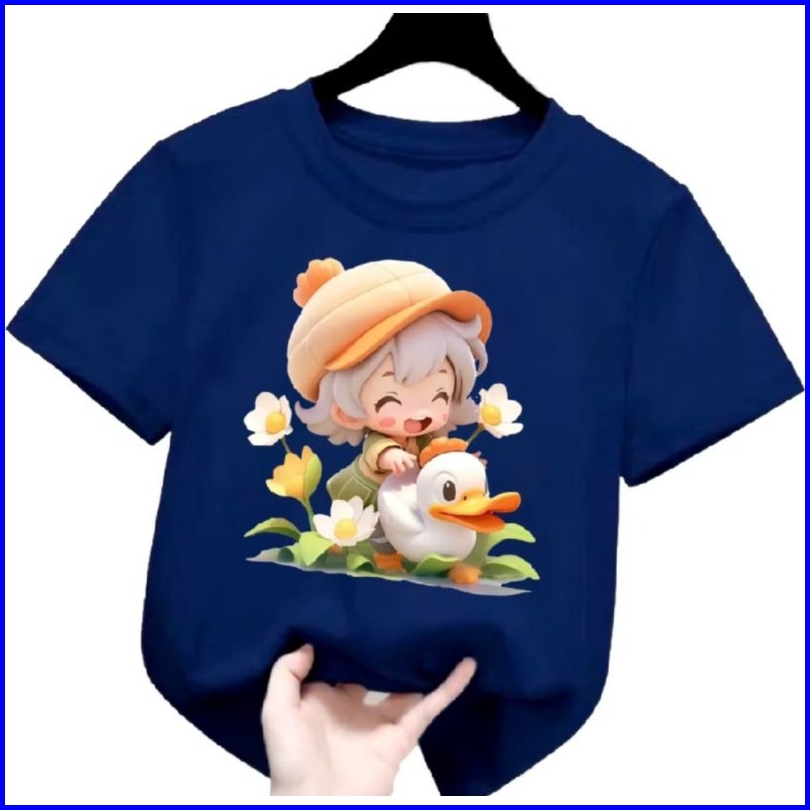 Kaos Anak Cowok Cewek Motif Cewek Dan Bebek Oblong Anak 2-10 Th