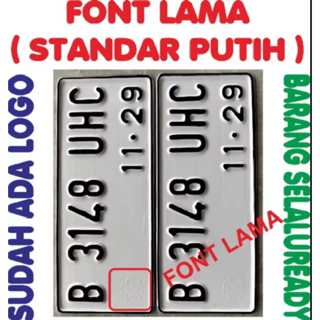 Pelat motor terbaru putih dan itam ada logo timbul