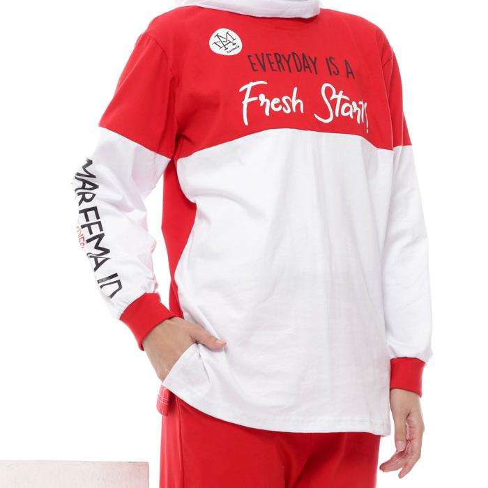 SETELAN OLAHRAGA WANITA MUSLIM TERBARU ONESET SPORTY SEPEDA LARI SETCEL BAJU CELANA - MERAH PUTIH, M FIT TO L
