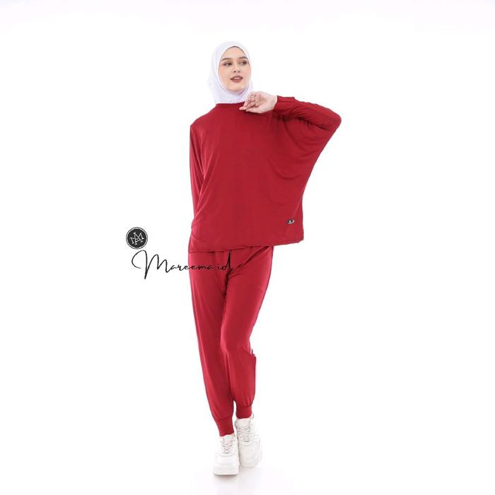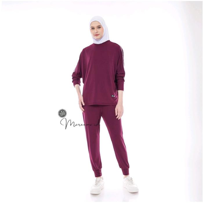 SETELAN OLAHRAGA WANITA MUSLIMAH TERBARU BAJU PEREMPUAN SPORT SENAM LARI JOGING BADMINTON - HITAM, SMALL