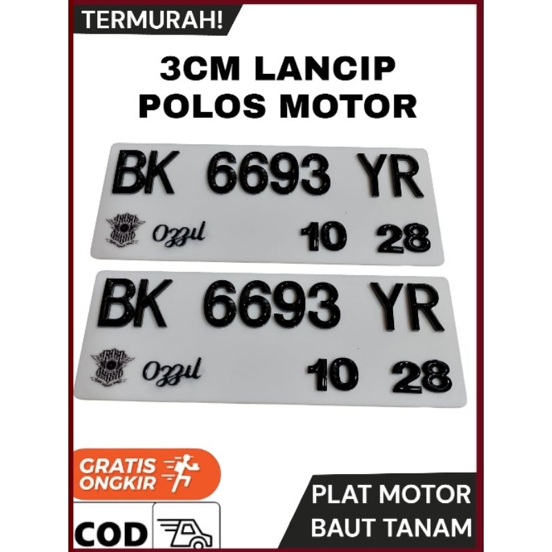 PLAT MOTOR TIMBUL - Piramid Hitam - Ukuran Universal SUDAH ADA BAUT TANAM - TEBAL 5 mm