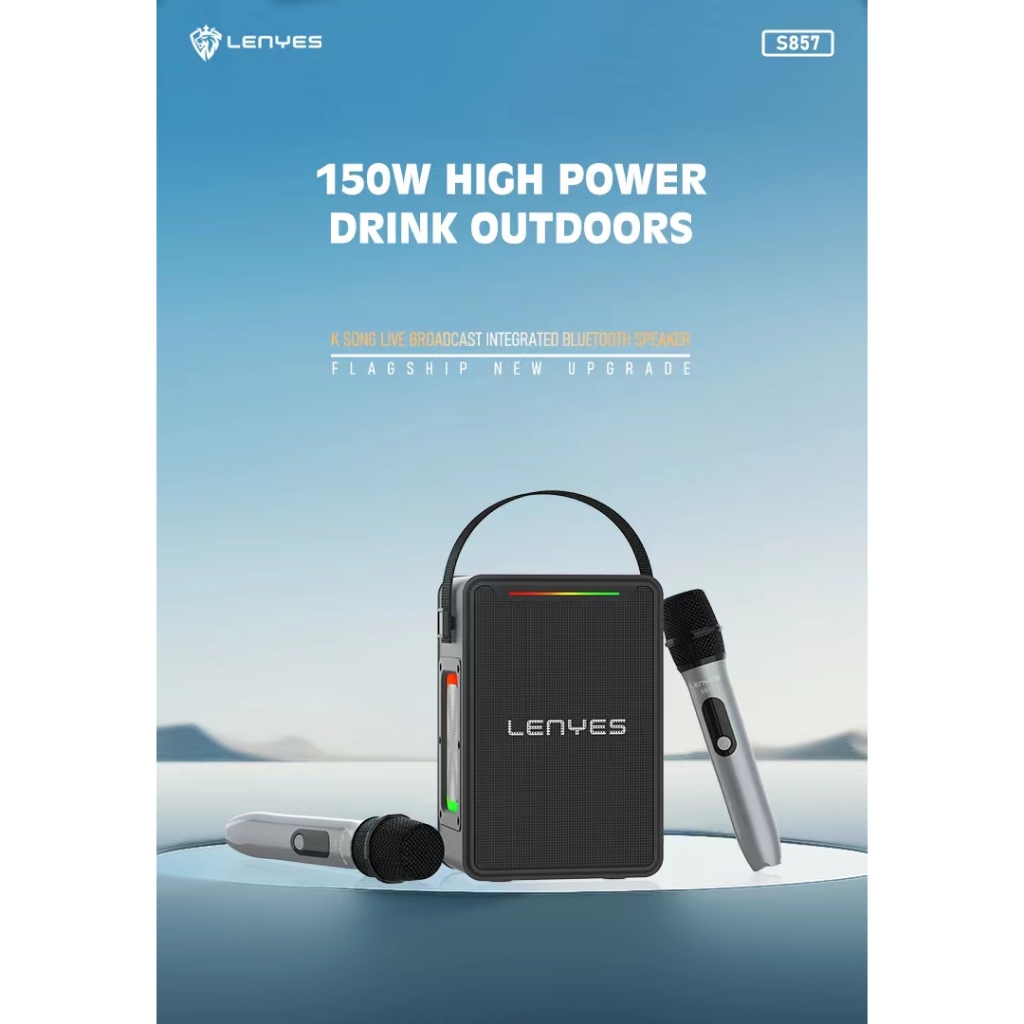 SPEAKER LENYES KARAOKE SPEAKER BLUETOOTH RGB TWS V5.3 150WATT WITH DUAL MICROPHONE HIFI STEREO S857 ORIGINAL TERLARIS