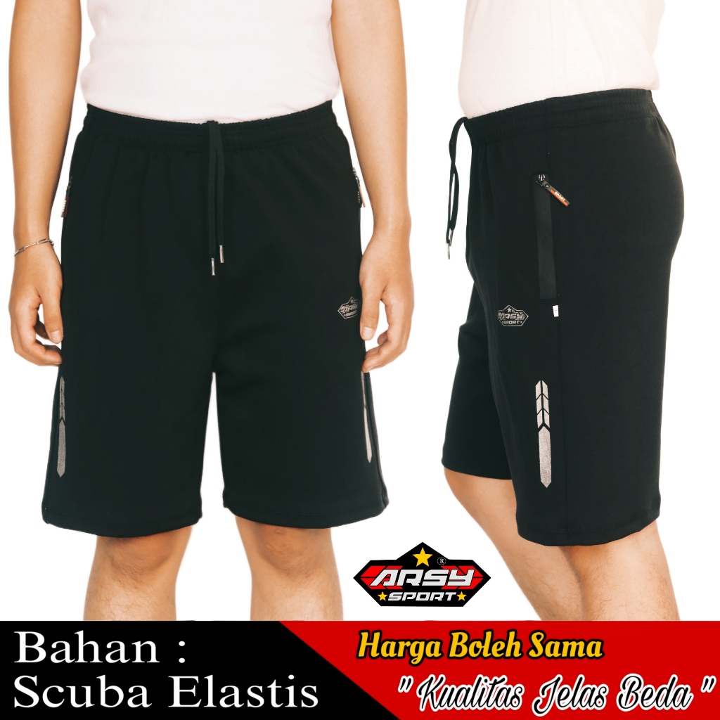 Paket 110Rb Dapat 2 Pcs - Celana Running Pria Arsy Sport Short Pant Gym SC003 - Bahan Scuba Elastic Adem Nyaman