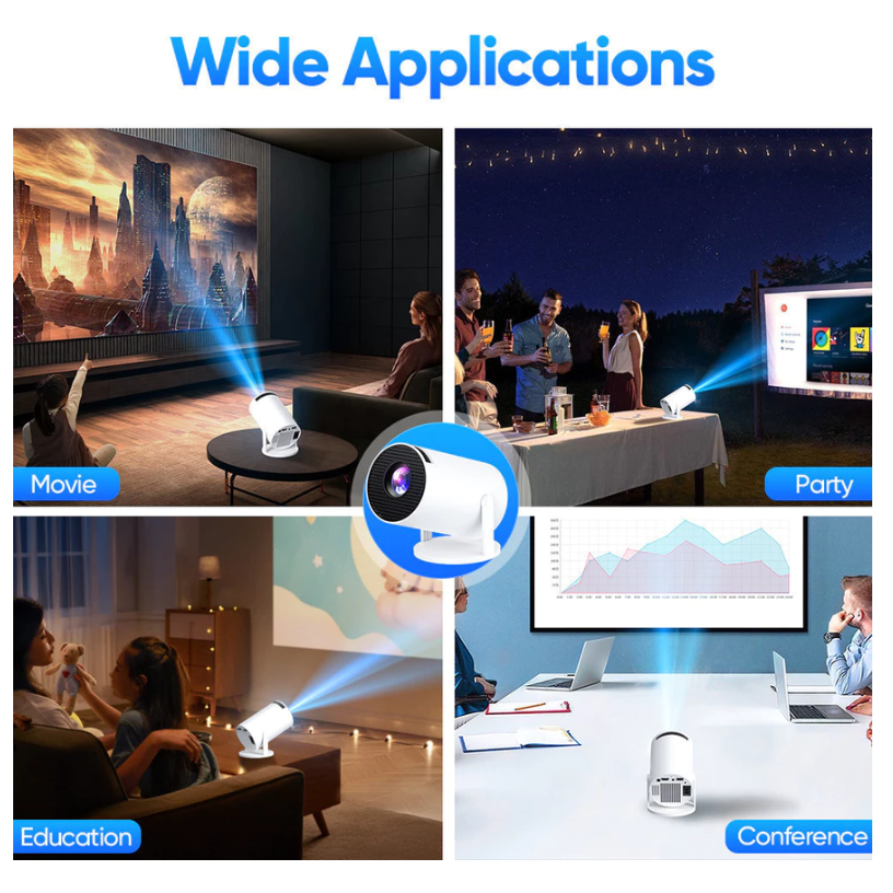 FEINODI HY300 Proyektor Android 11 Bluetooth Proyektor 2.4+5G Wifi 6 Portabel Minimalis Full HD