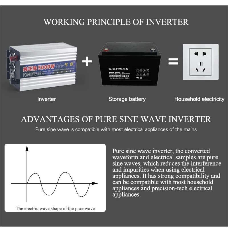 SUNYIMA 5000W 6000W POWER INVERTER PURE SINE WAVE DC 12V/24V TO AC 220V