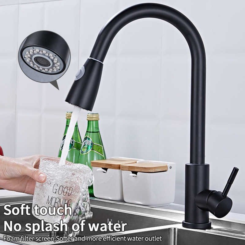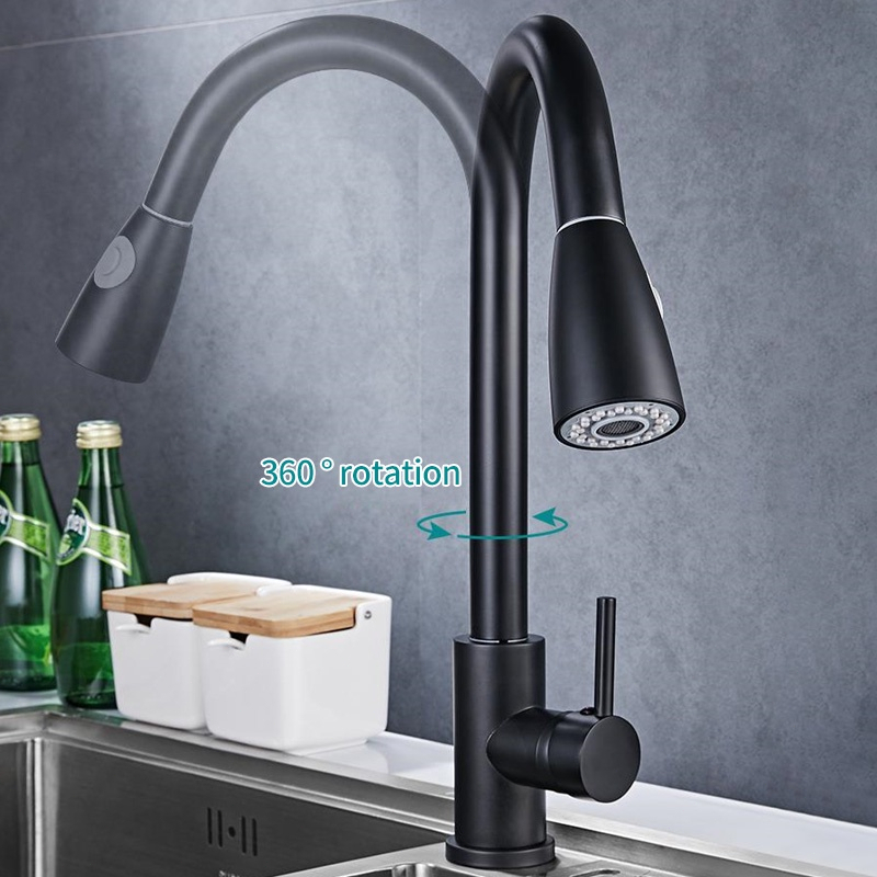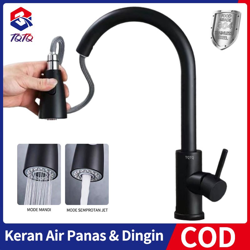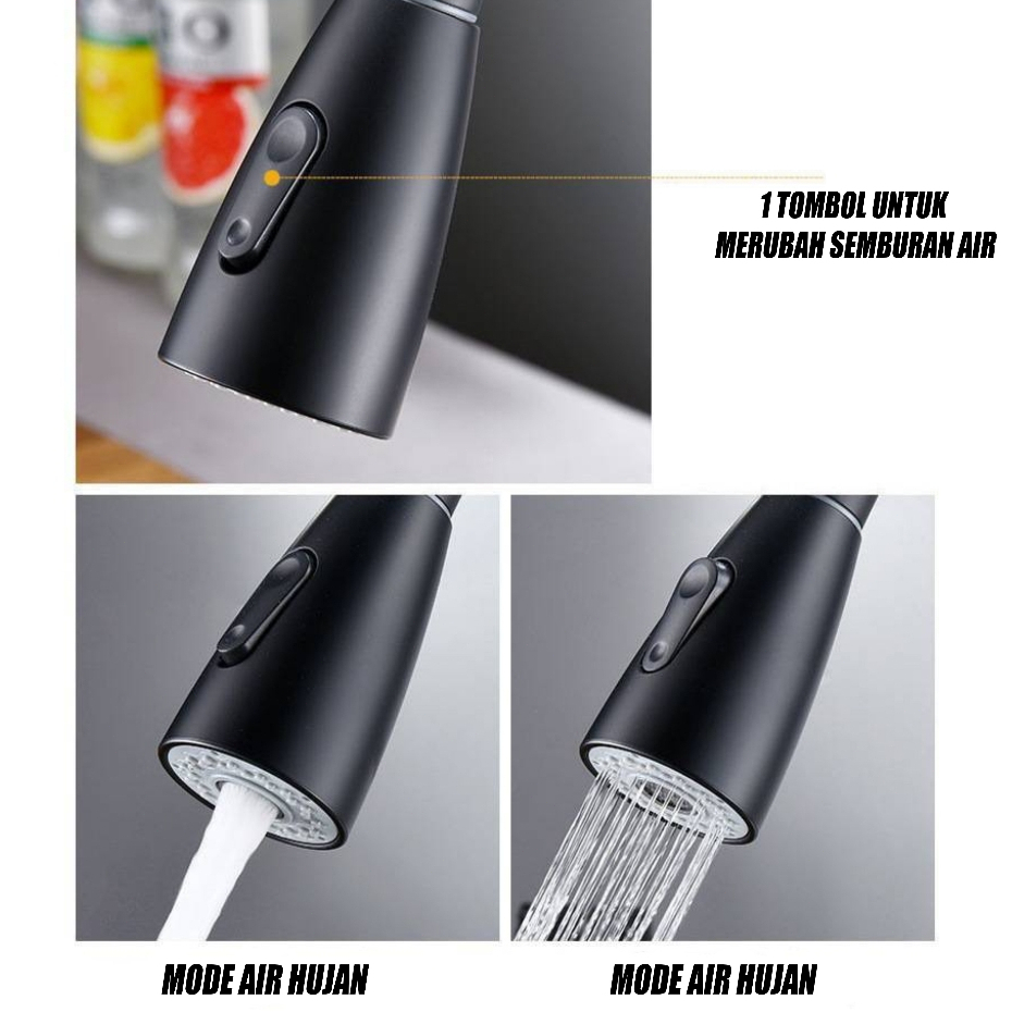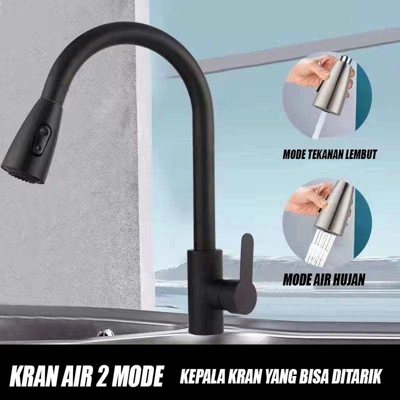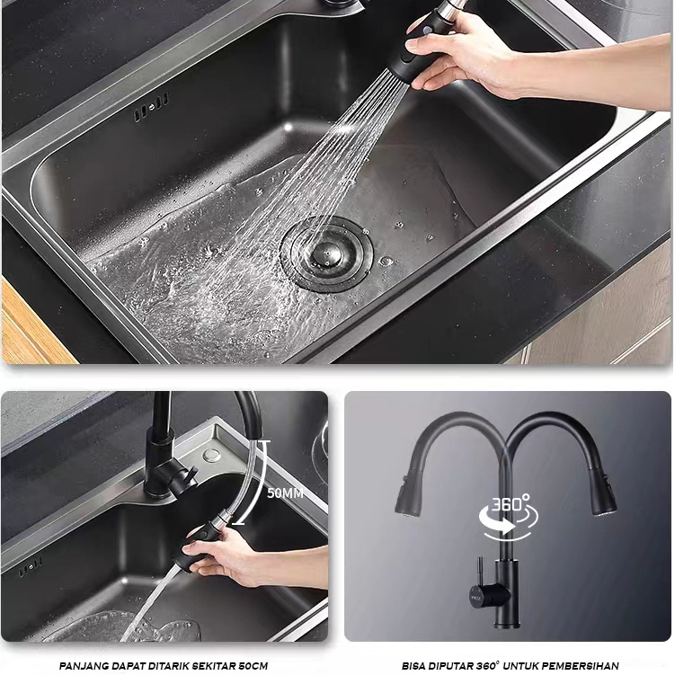 Kran Tarik Kitchen Sink Keran Dapur Bak Cuci Piring Kran Sink Hitam Perak Stainless Kepala Pancuran Gratis Ongkir