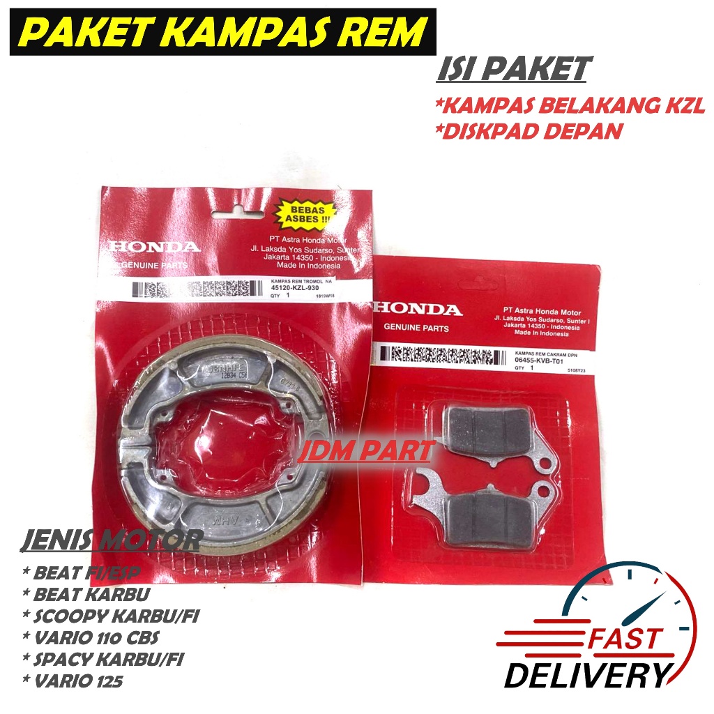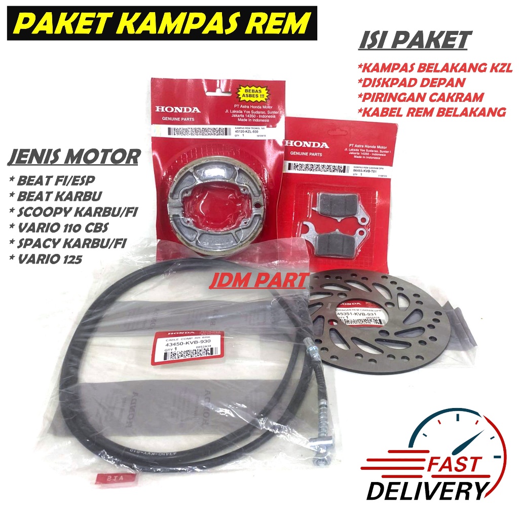 PAKET KOMPLIT KAMPAS REM BELAKANG TROMOL + KABEL REM + DISPAD DEPAN + PIRINGAN CAKRAM HONDA BEAT FI / POP / SCOOPY / SPACY / VARIO 110 / INJEKSI DAN KARBU VARIO 125 / SEPAKET