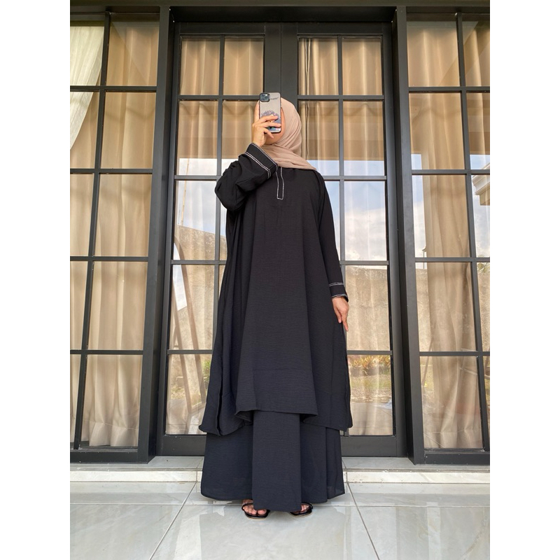 Setelan Tunik Rok Syari Fatimah dengan Saku dan Resleting untuk Ibu Menyusui - Gamis, Wanita