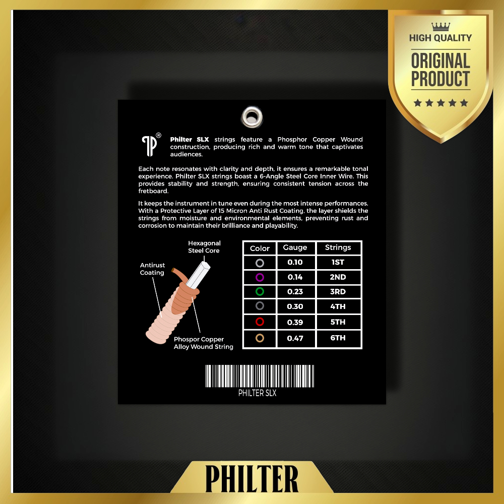 Senar Gitar Akustik String Philter SLX Extra Coated Phosphor Copper Original