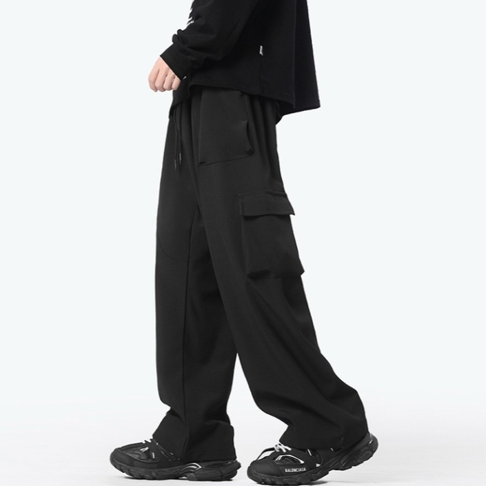 Celana Cargo Pria Panjang Loose Fit Korean Summer Style Multi Saku