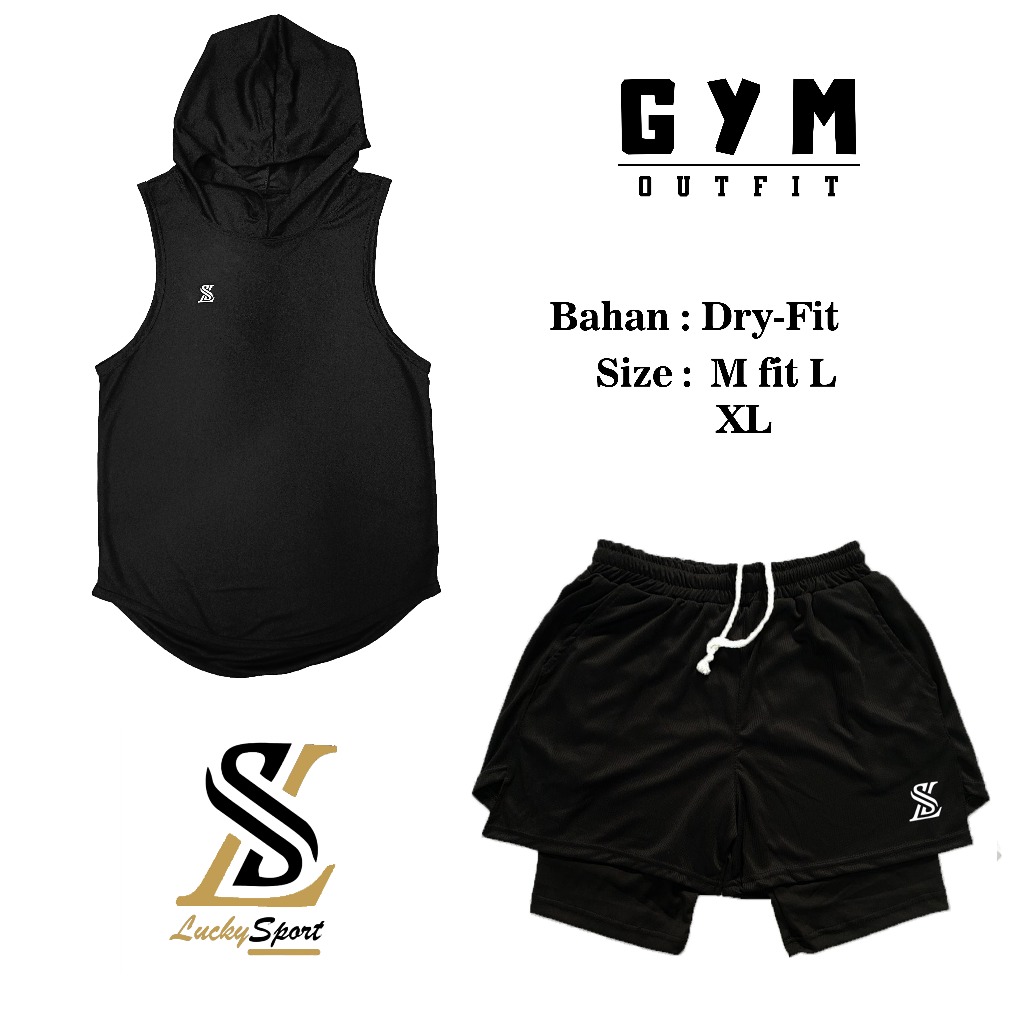 Stelan Jersey Hoodie Baju dan Celana Olahraga GYM Fitness Voli Lari pria wanita Sport LUCKY SPORT